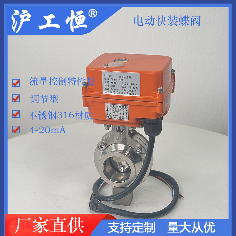 Электрический санитарный быстромонтируемый бабочковый клапан из нержавеющей стали с зажимным патроном D981X