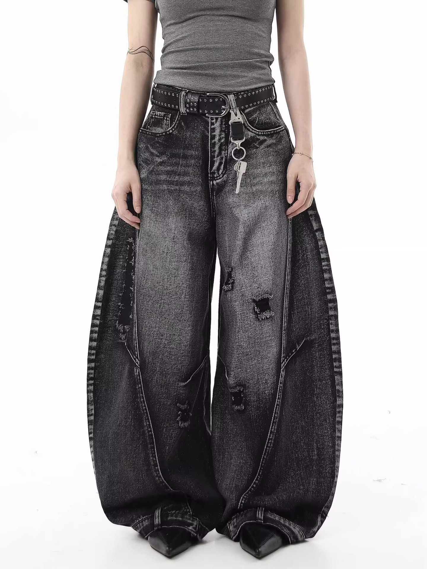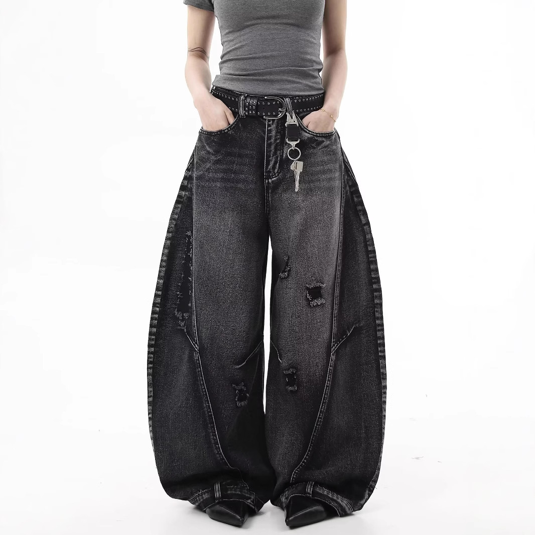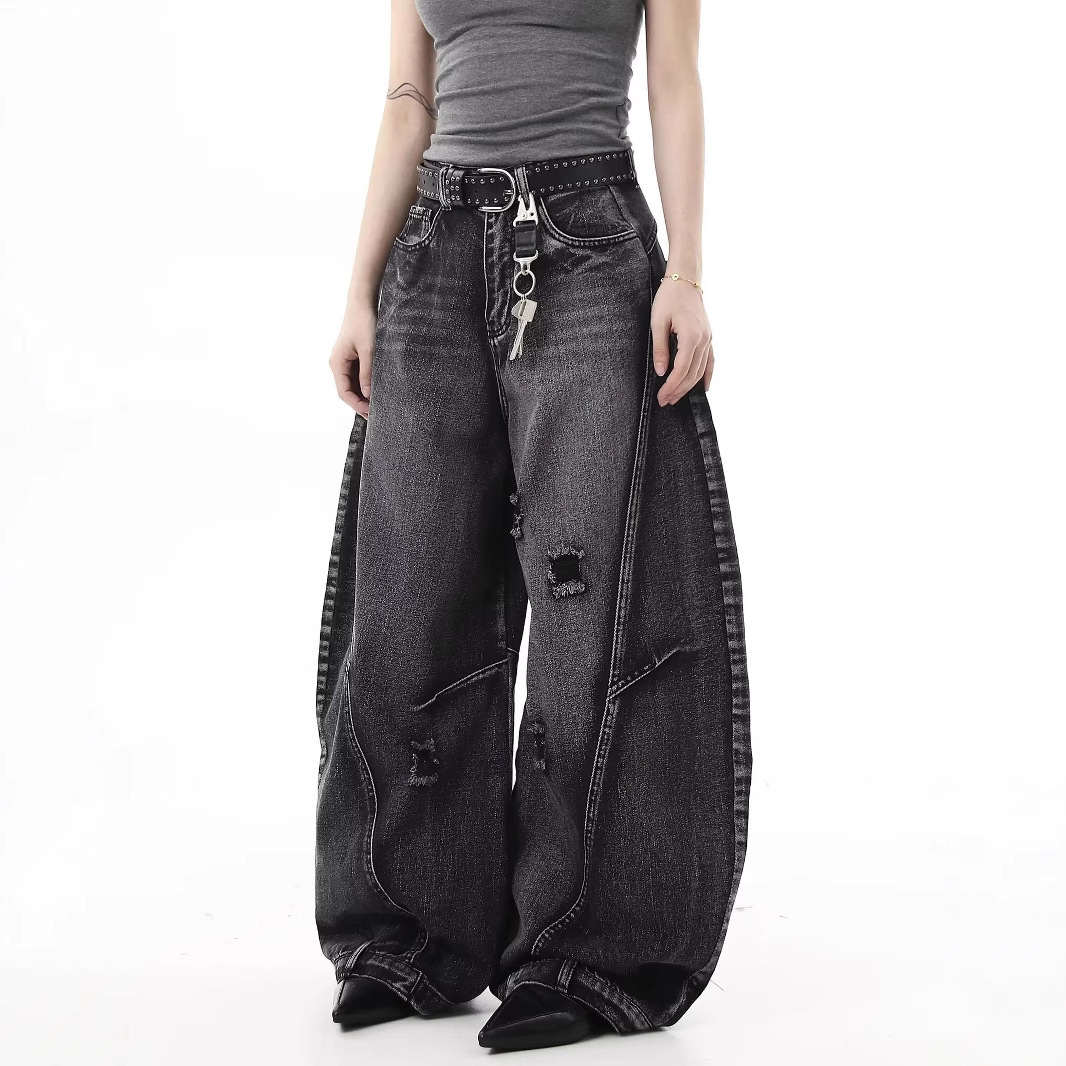 Европейские и американские ретро-джинсы в гонконгском стиле, рваные свободные широкие брюки длиной до пола, дизайн, новый стиль весны и осени