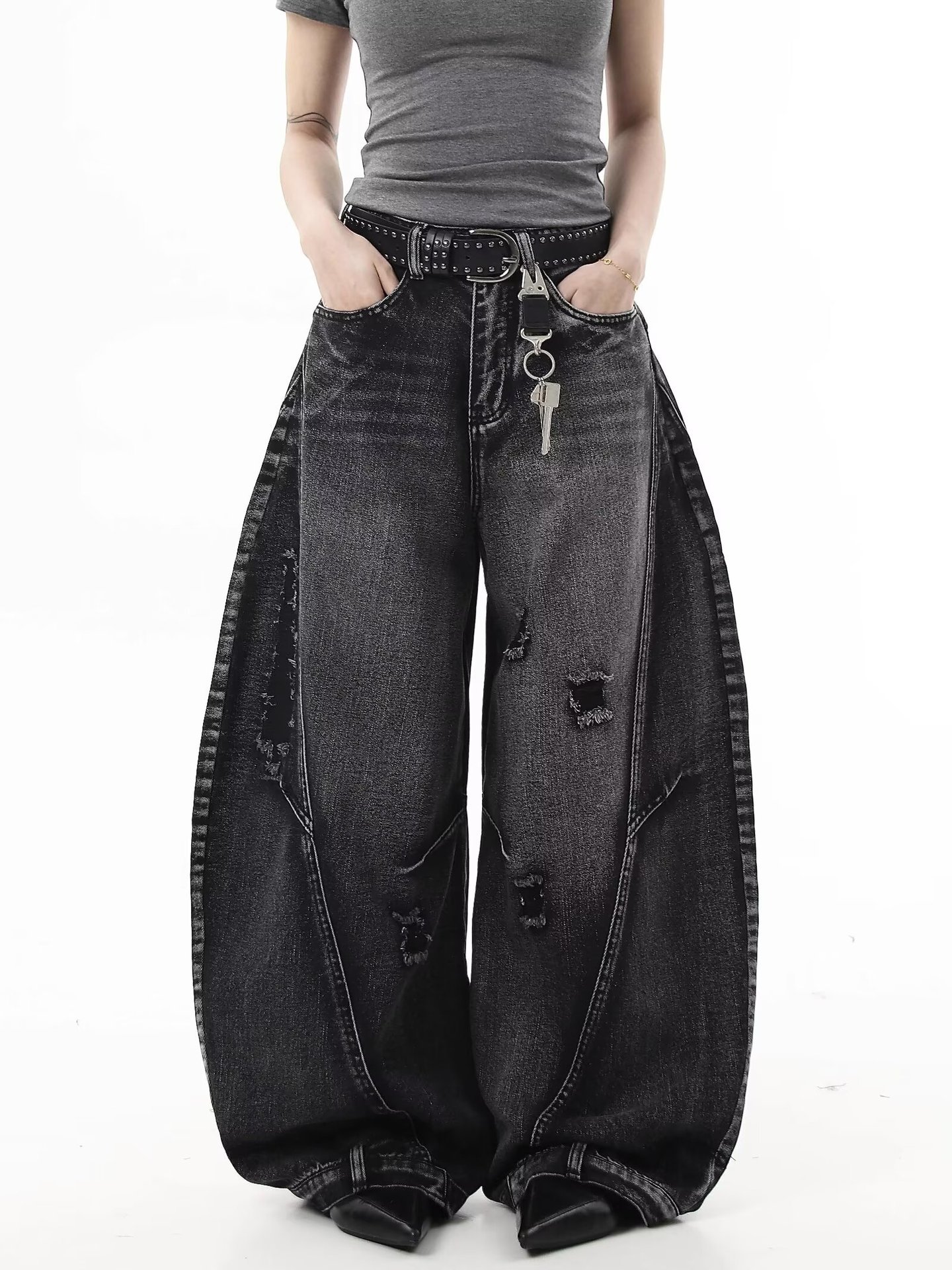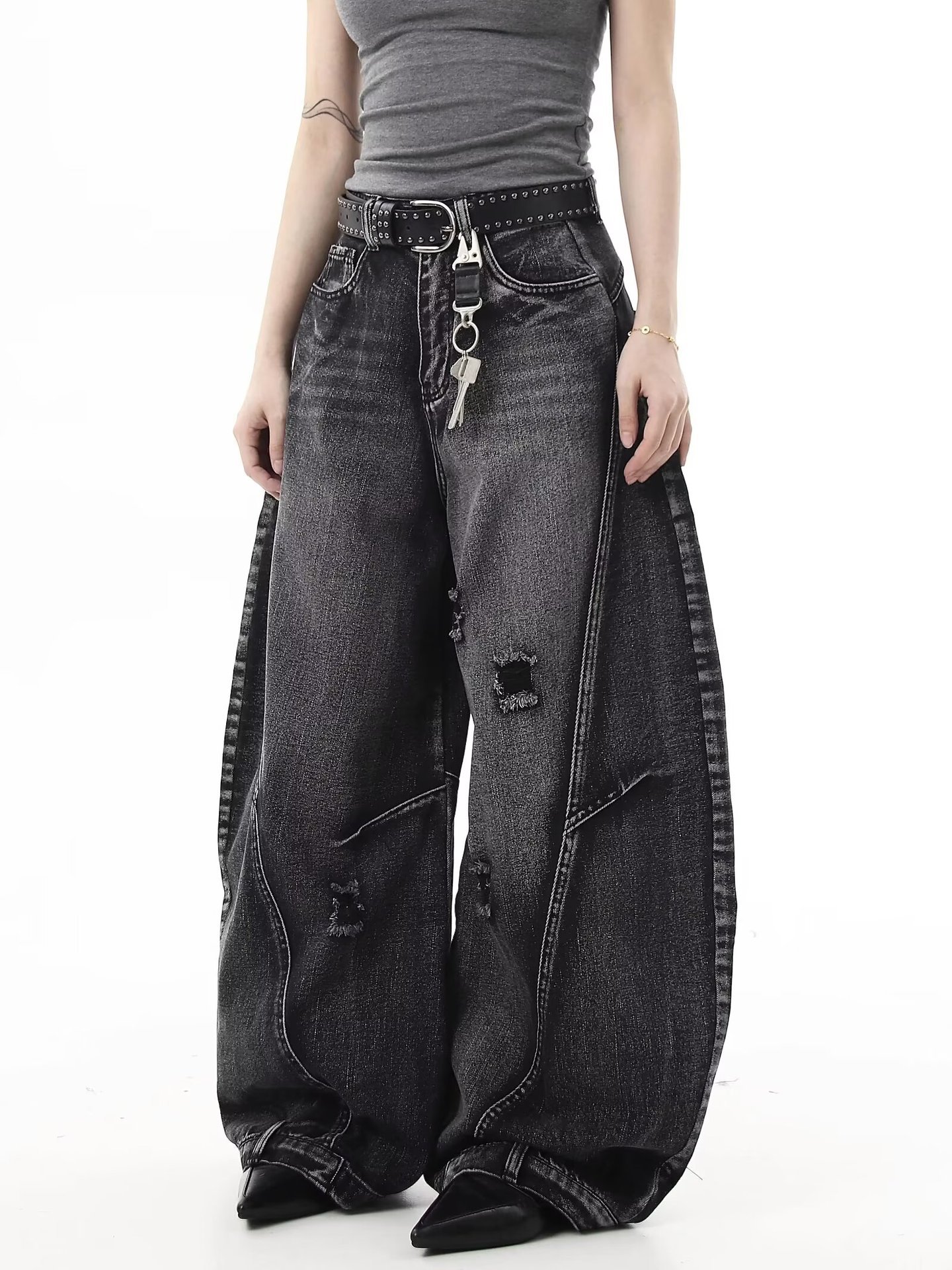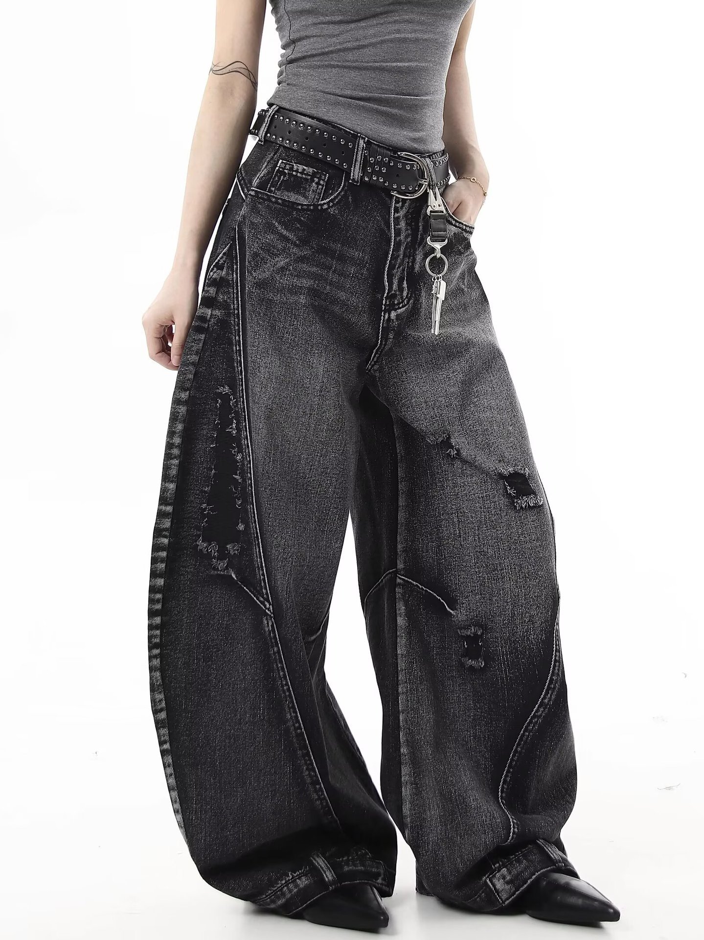 Европейские и американские ретро-джинсы в гонконгском стиле, рваные свободные широкие брюки длиной до пола, дизайн, новый стиль весны и осени