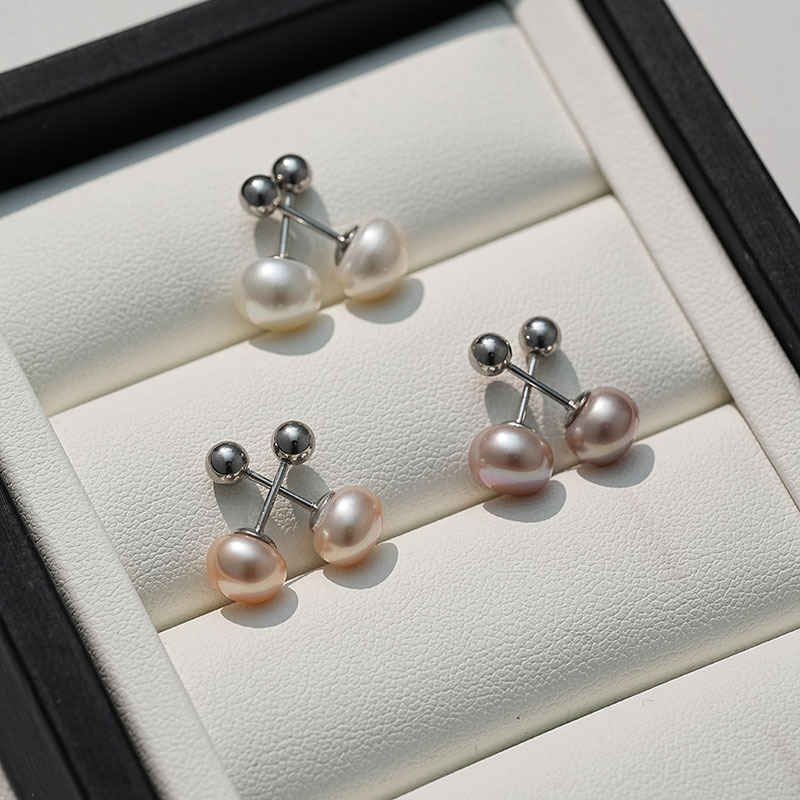 999 стерлинговая винтовой пряжка из серебра пресноводного жемчуга серьги женские легкие и экстравагантные.