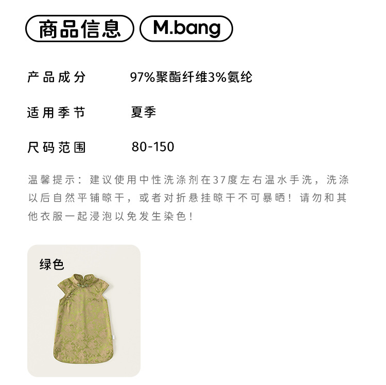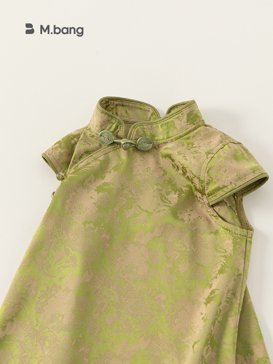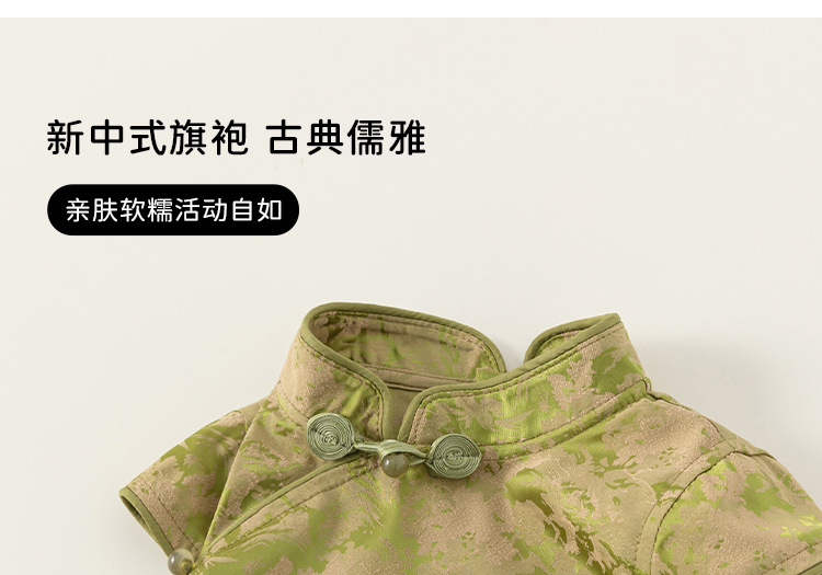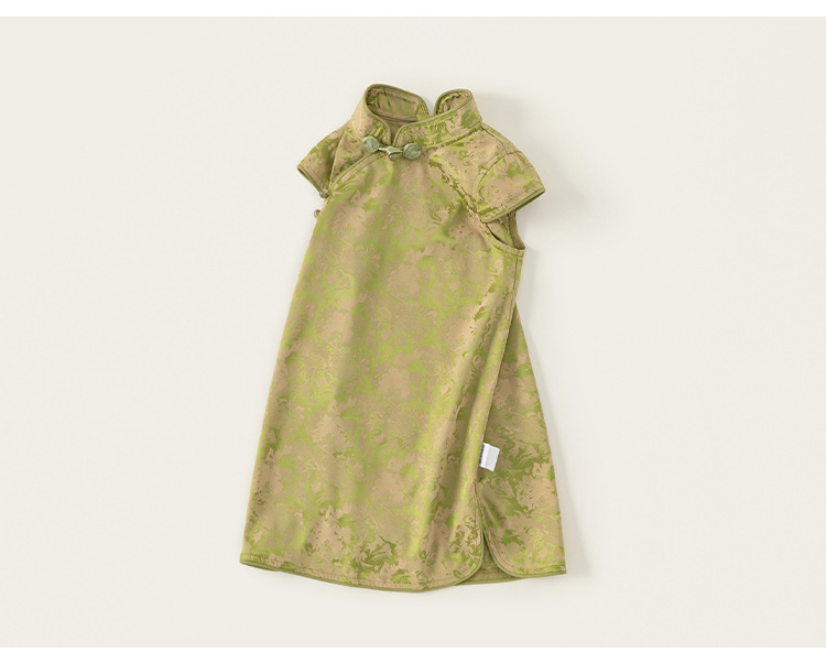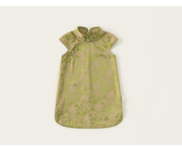 Детская одежда Bao New China Cheongsam Платье Летнее светло-зеленое цветочное узор дышащая детская юбка без рукавов