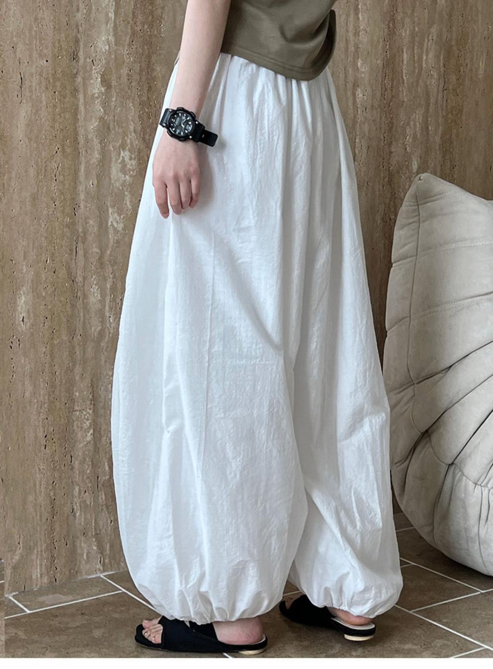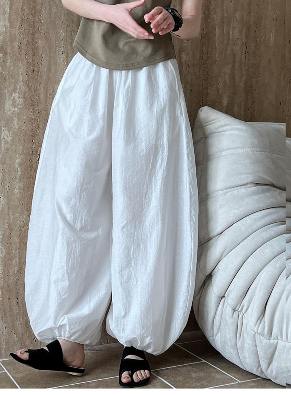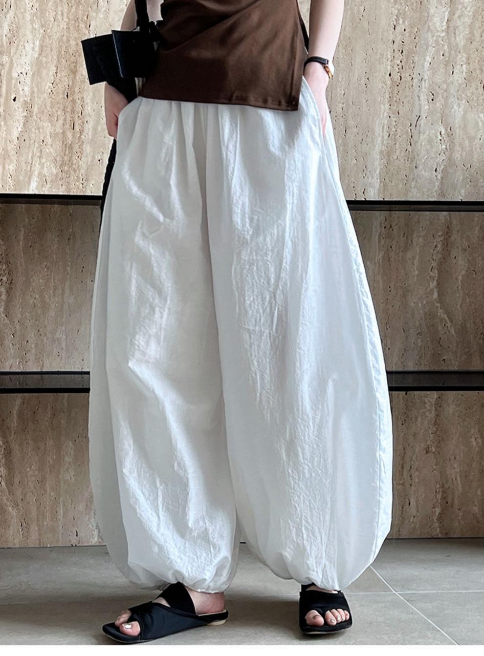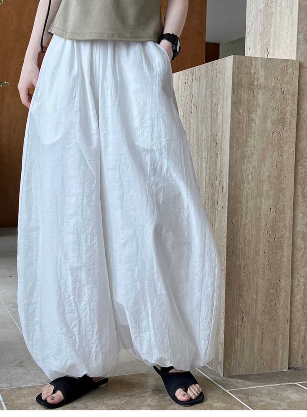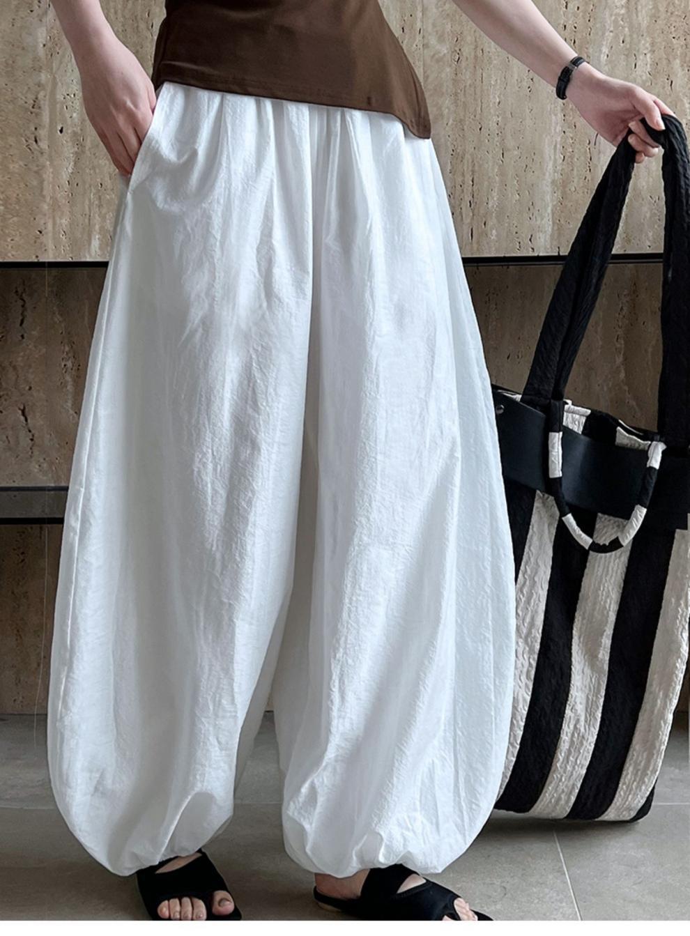 Дышащий хлопок ~ Летние новые белые свободные шаровары женские дизайнерские брюки широкие брюки