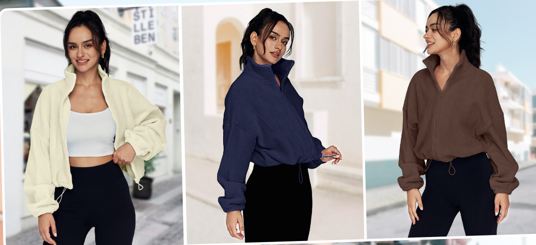 Женская куртка на молнии с воротником-стойкой, на флисовой подкладке, из кашемира, для спорта, осенне-зимняя коллекция 2025 года, хит продаж на Amazon, для трансграничной торговли в Европе и Америке