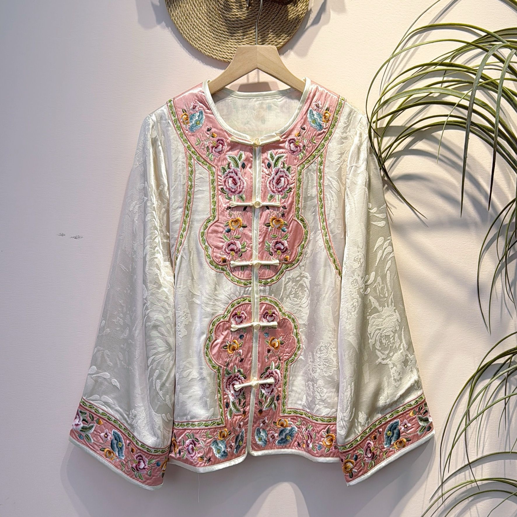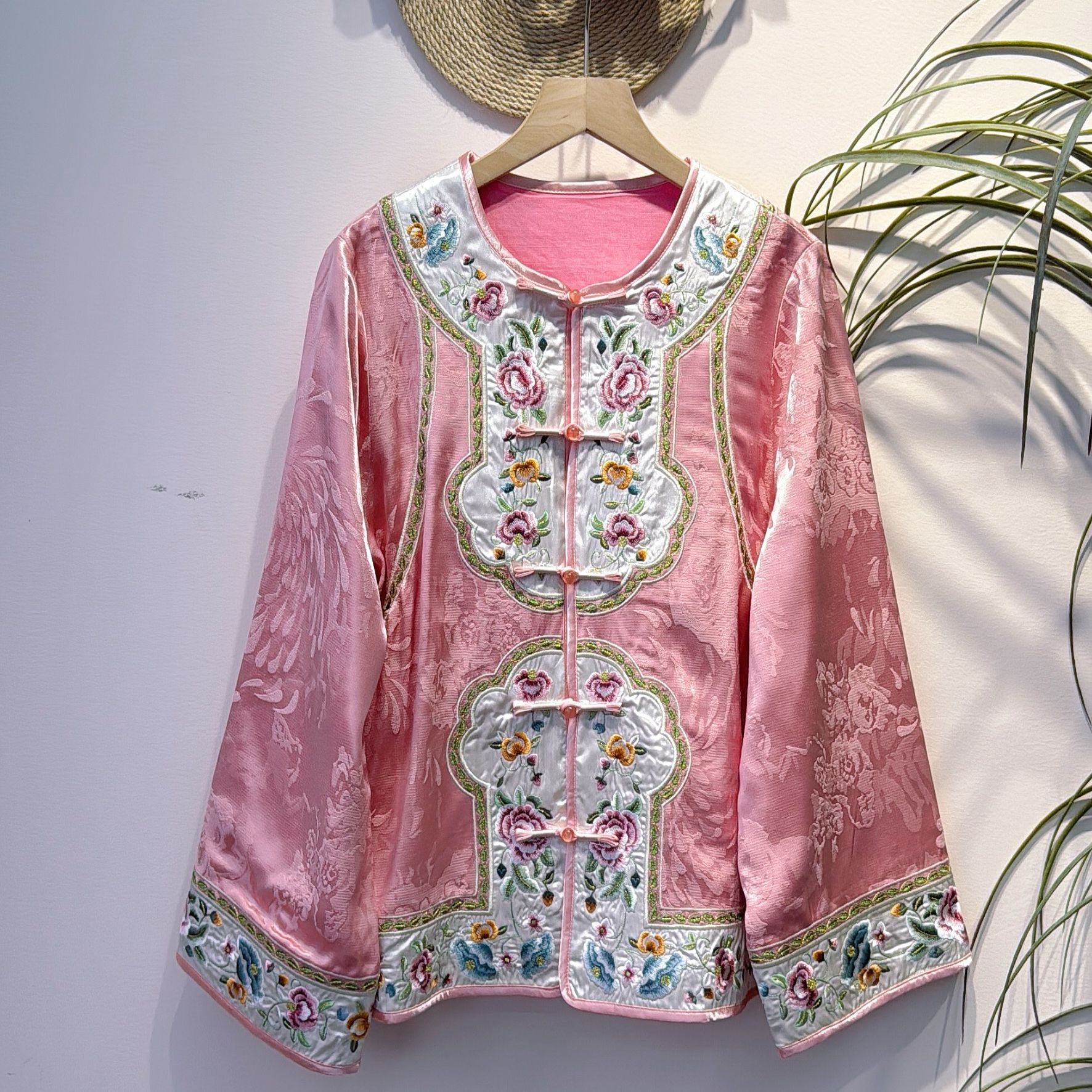 Клетчатая куртка в китайском стиле с вышивкой пионов в стиле пэчворк, улучшенное элегантное пальто, новый универсальный топ в китайском стиле для весны и осени.
