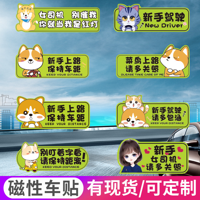 Магнитные автомобильные наклейки для начинающих на дороге, креативные магнитные светоотражающие забавные автомобильные наклейки для женщин-водителей, магнитные наклейки