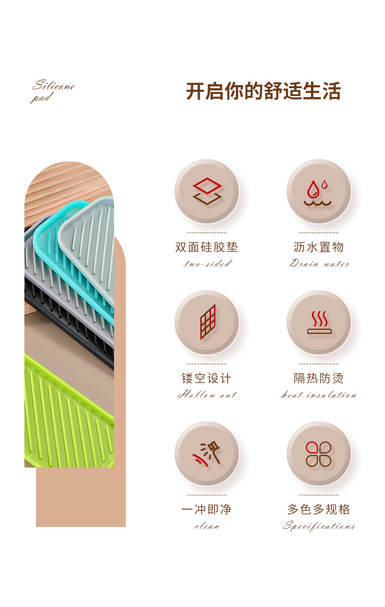 Пятно простой многофункциональный утолщенный силиконовый слитный коврик двухсторонний полосатый нескользящий сухой коврик