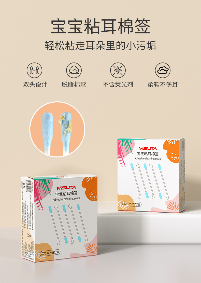 MISUTA детский ватный тампон Baby липкий двухголовый ватный тампон для новорожденных