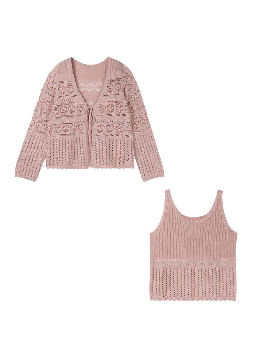 这款可以称之为jue美的针织背心和系带开衫两件套