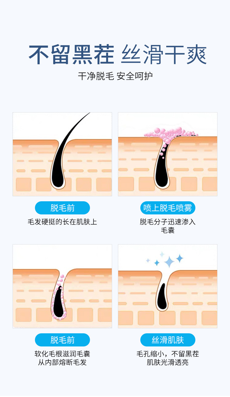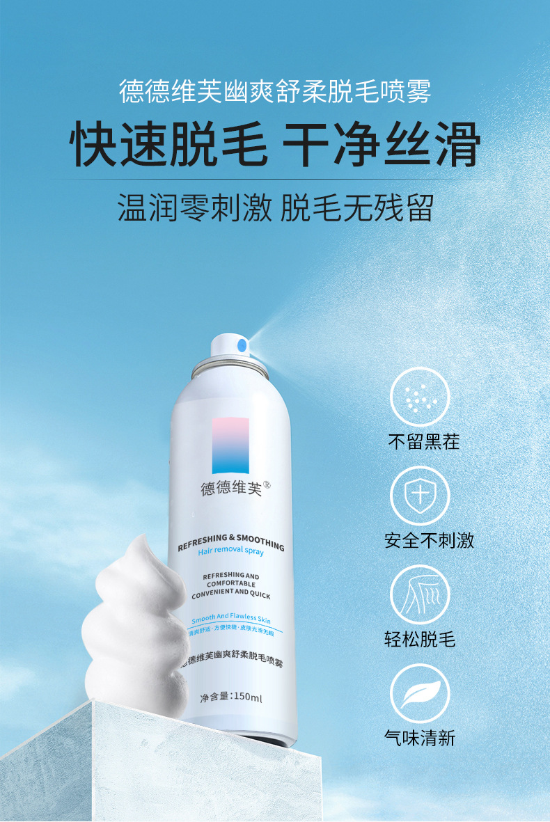 Dedeweif Элегантный успокаивающий спрей-крем для удаления волос Мусс Нераздражающий Мягкий и безвредный крем для удаления волос Большой объем