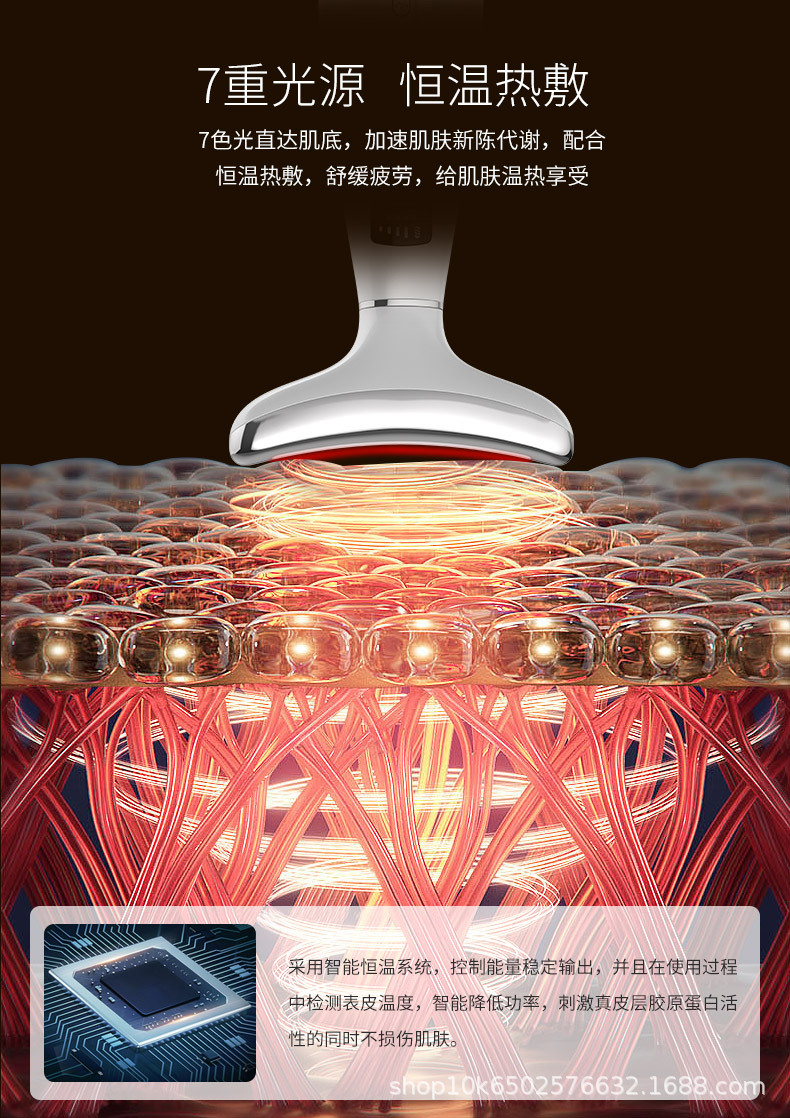 EMS, ледяной компресс, нагрев, вибрация, красный, зеленый, синий и оранжевый свет.