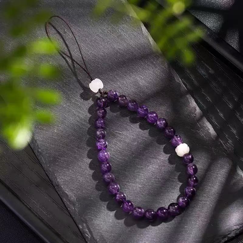 Cai Cai Crystal Mobile Chain Женский нежный натуральный аметист запястье подвеска из бисера чехол для мобильного телефона