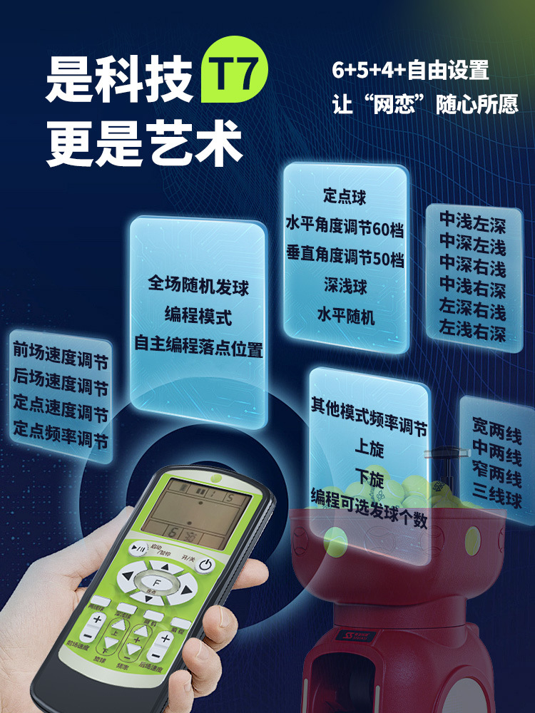 Spores T7 Интеллектуальная автоматическая машина для теннисных мячей Автоматический пусковой механизм Устройство для тренировки одного партнера.