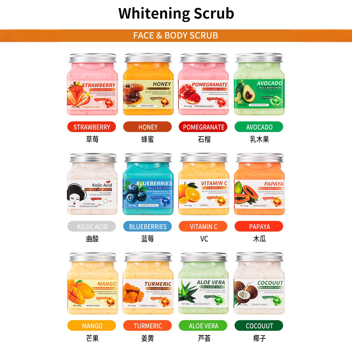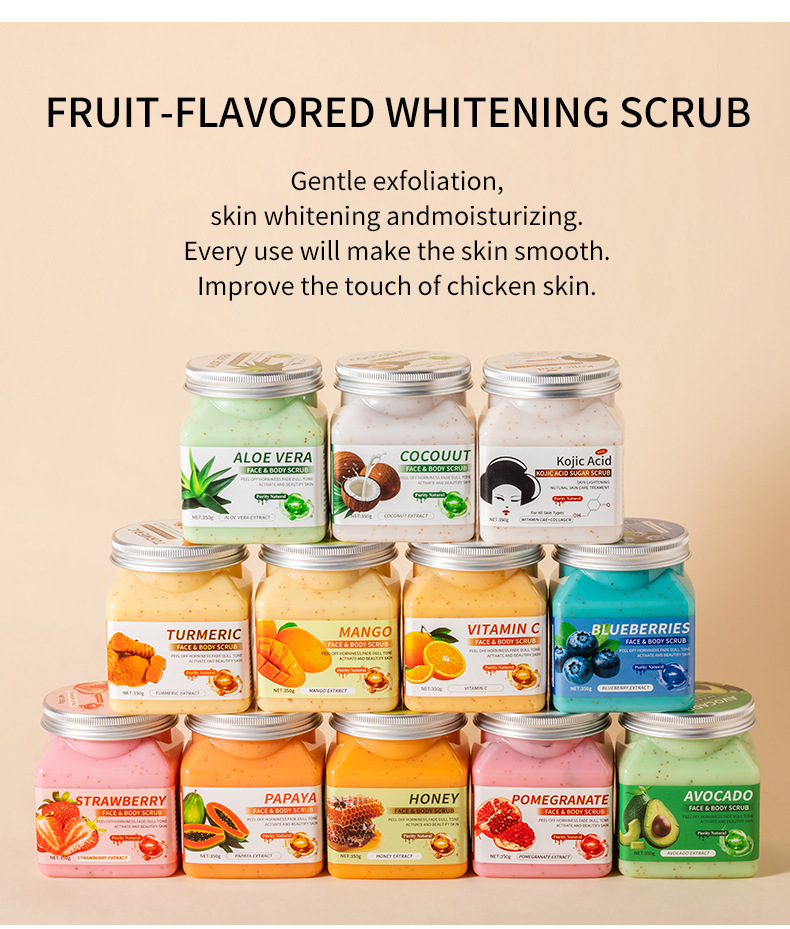Заказывайте смешанные партии скраба [72 флакона в одной коробке]; Скраб с черникой 350г; Скраб из авокадо 350г; Скраб с койевой кислотой 350г.; Скраб из манго 350г; Скраб Алоэ Вера 350г; Скраб с куркумой 350г; Скраб из папайи 350г; Кокосовый скраб 350г; Клубничный скраб 350г; Апельсиновый скраб VC 350г; Медовый скраб 350г; Гранатовый скраб 350г