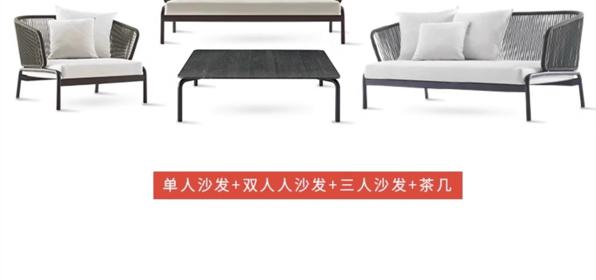 Одноместный диван [алюминиевый сплав + ротанг]; Одноместный диван [алюминиевый сплав + веревка]; Двойной диван [алюминиевый сплав + ротанг]; Двойной диван [алюминиевый сплав + веревка]; Диван на три человека [алюминиевый сплав + ротанг]; Диван на три человека [алюминиевый сплав + веревка]; Кровать [алюминиевый сплав + ротанг]; Кровать [алюминиевый сплав + веревка]; Большая кровать [алюминиевый сплав + ротанг]; Большая кровать [алюминиевый сплав + веревка]; журнальный столик 120 см; Приставной столик 50*50 см; Одиночный + одиночный + приставной столик [алюминиевый сплав + веревка]; Одноместный + Одноместный + Двойной + Журнальный столик [Алюминиевый сплав + Веревка]; Одноместный + Одноместный + Трехместный + Журнальный столик [Алюминиевый сплав + Веревка]; Одноместный + Двойной + Трехместный + Журнальный столик [Алюминиевый сплав + Веревка]