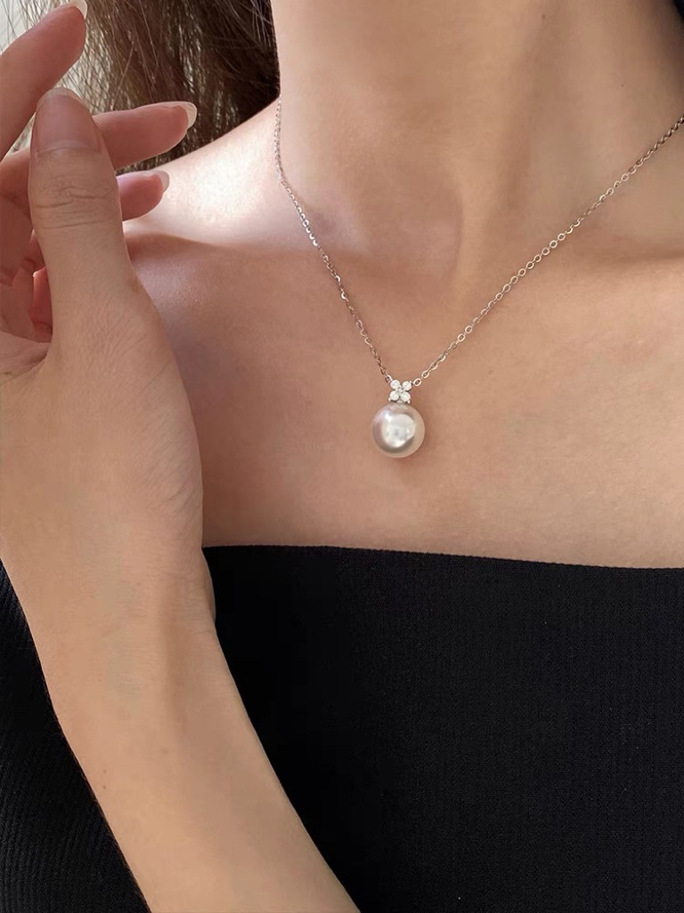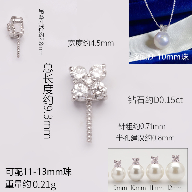 Аксессуары Pt900, подвеска в форме четырехлистного клевера, инкрустированная бриллиантами, модель d0,15ct с бусинами 9-10 мм, без цепочки и бусин