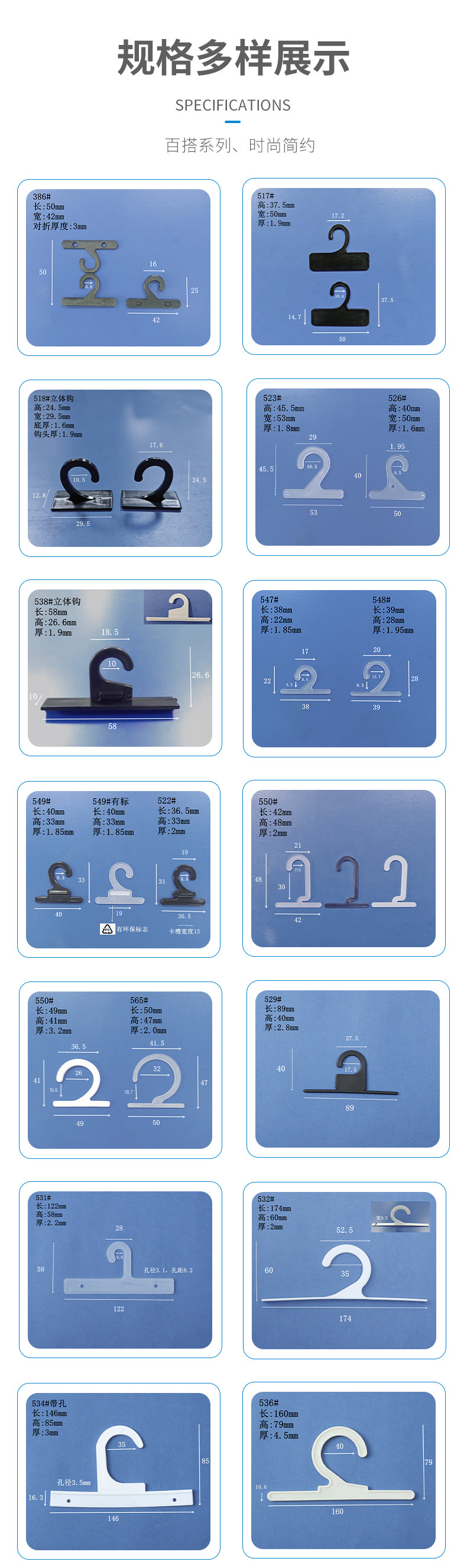 Производитель изготовил на заказ крючки для пластиковых пакетов, пластиковые крючки, крючки для носков, крючки для супермаркетов, крючки для образцов ткани, застежки-кнопки, крючки для одежды.