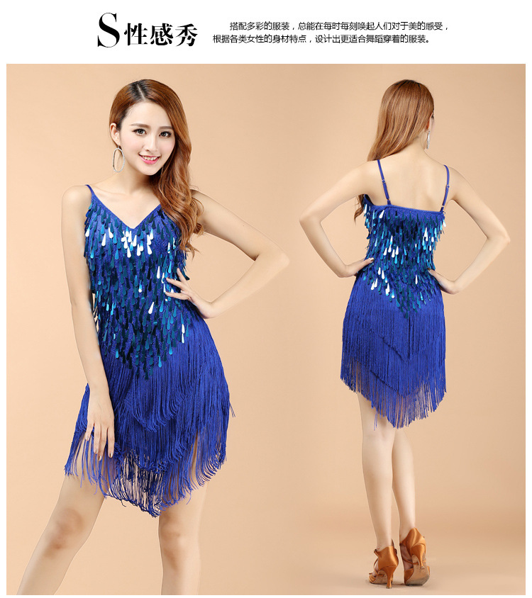 Новая одежда для соревнований по латинским танцам, платье с кисточками, одежда для выступлений, сексуальная одежда без рукавов с блестками для сцены, танцев для взрослых, женская одежда