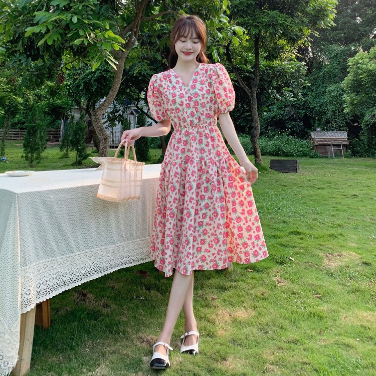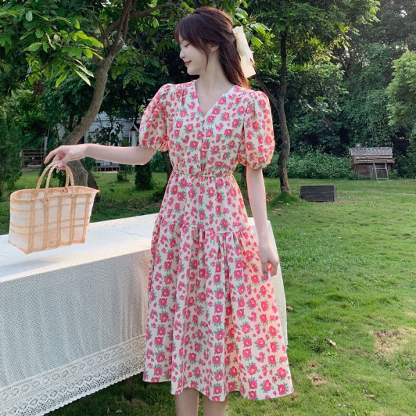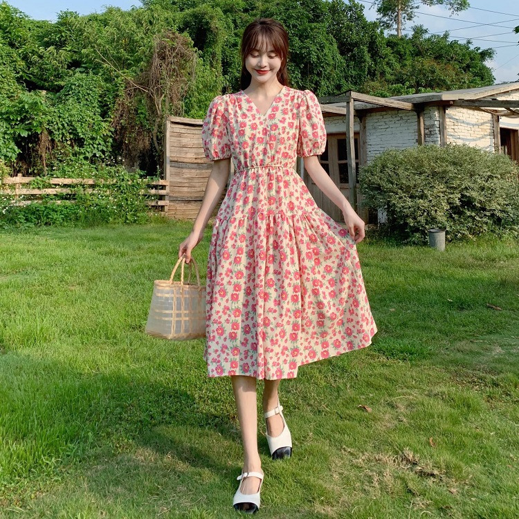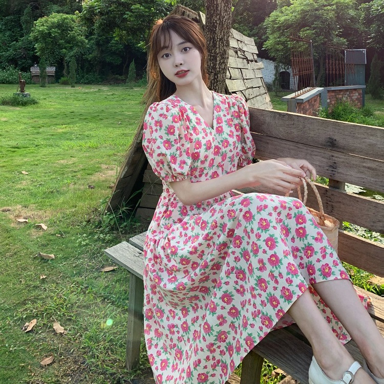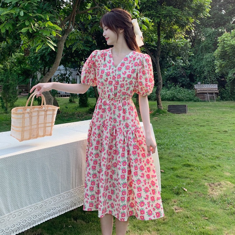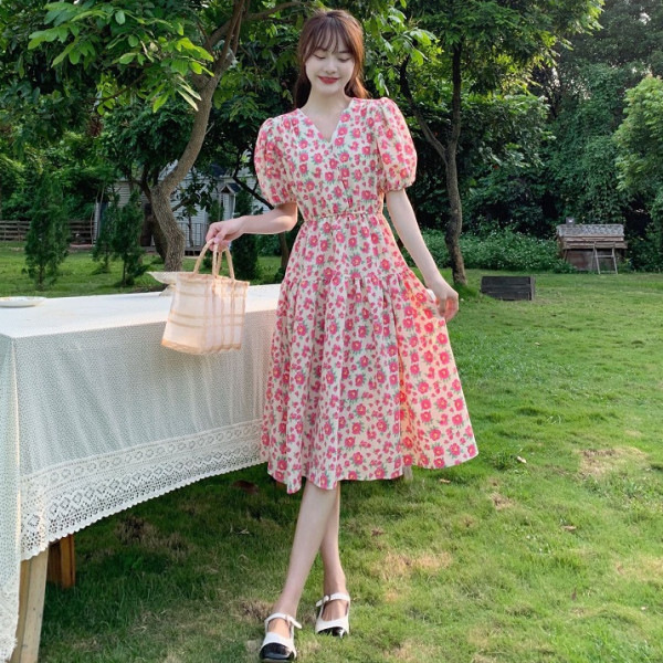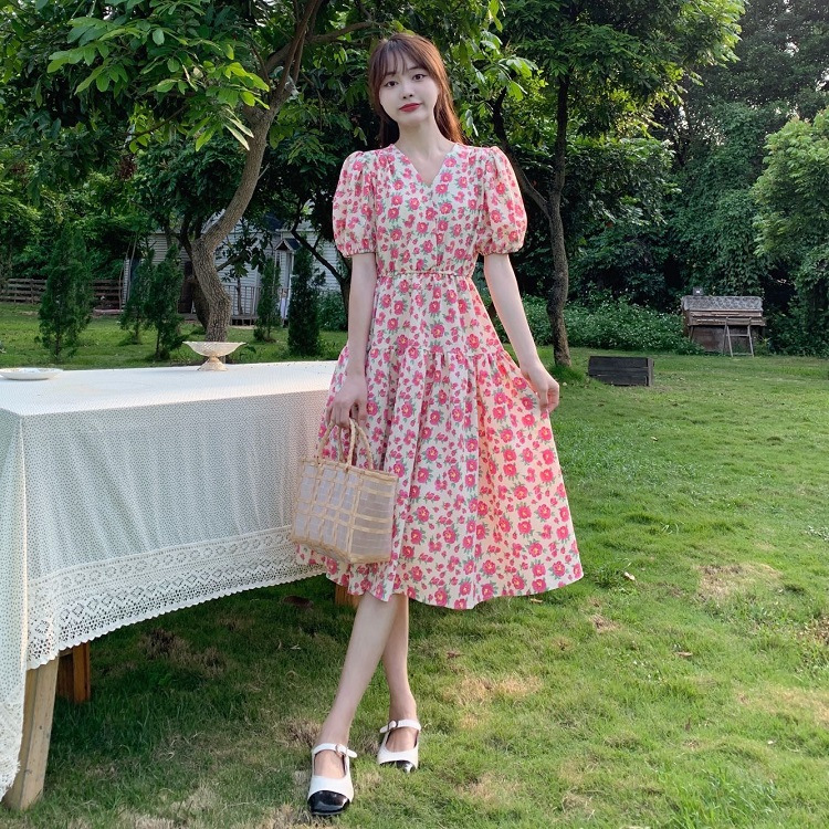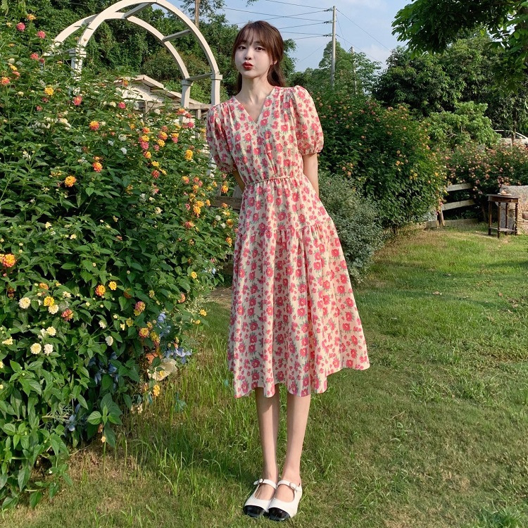 Нежное фиолетовое платье с цветочным принтом во французском стиле, нишевый дизайн для женщин, летнее винтажное шикарное платье в Гонконге.