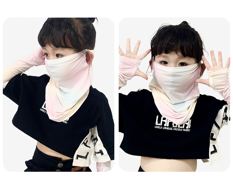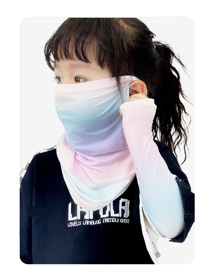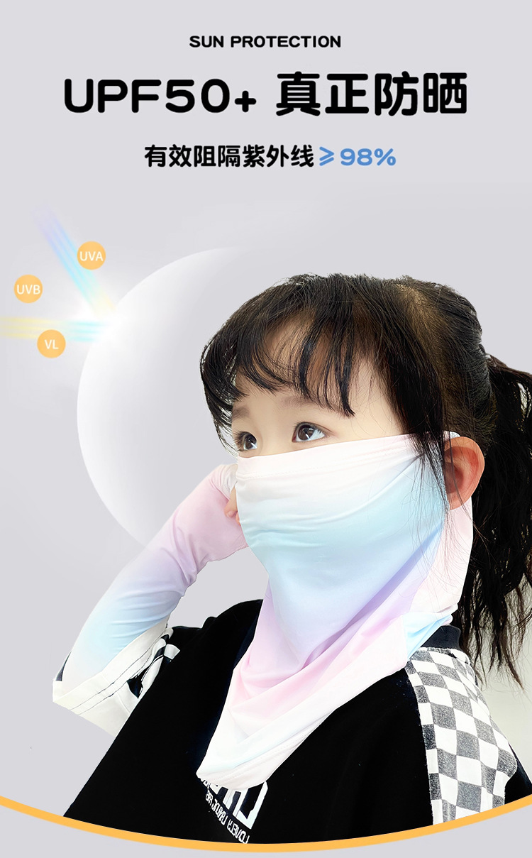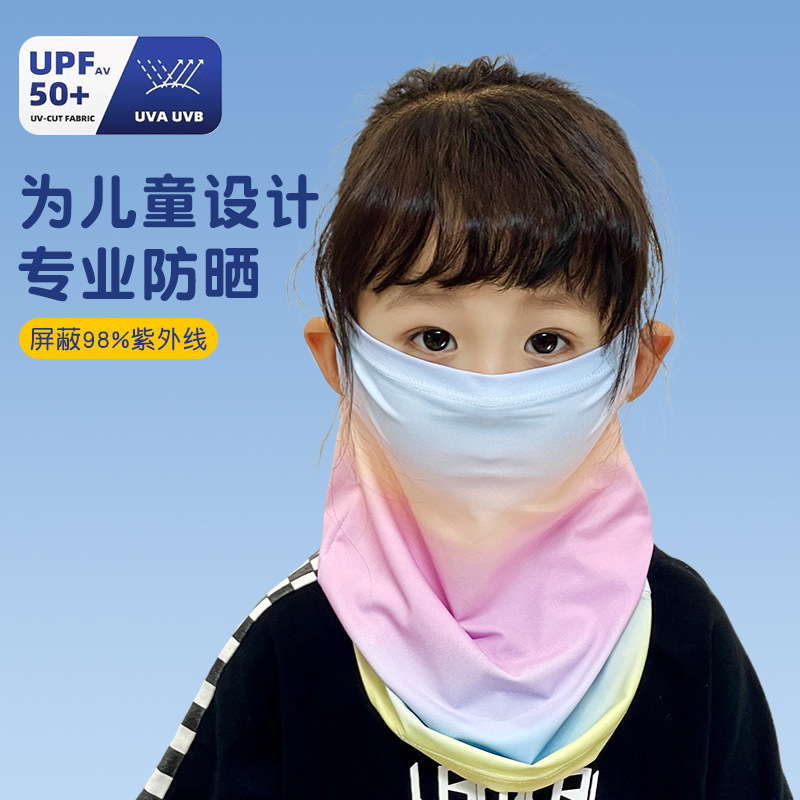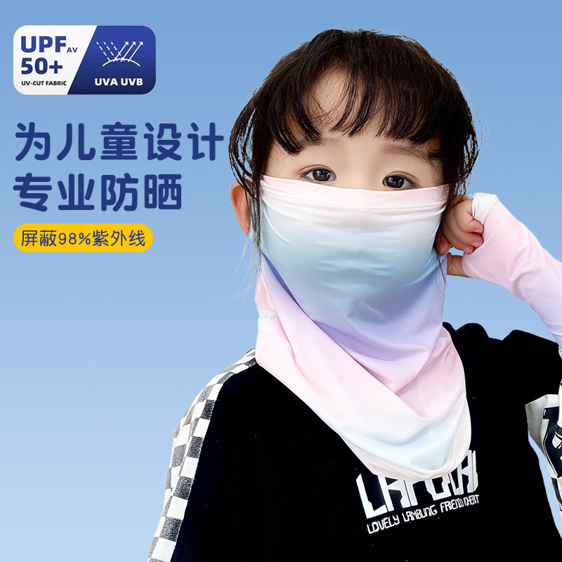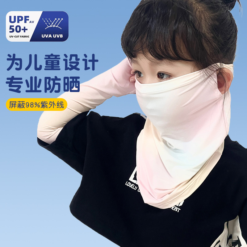 Детская солнцезащитная маска, летняя дышащая маска из ледяного шелка с защитой от ультрафиолета, защита шеи, полная защита лица, солнцезащитный шарф для девочек
