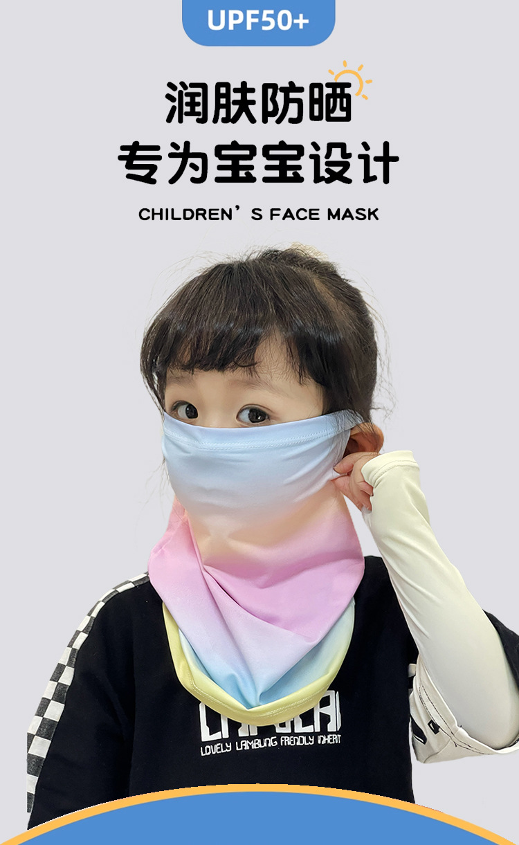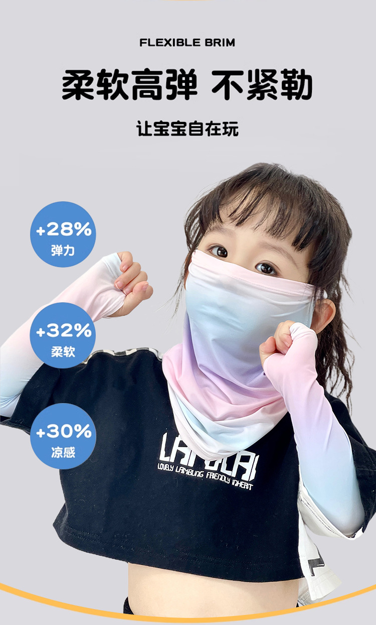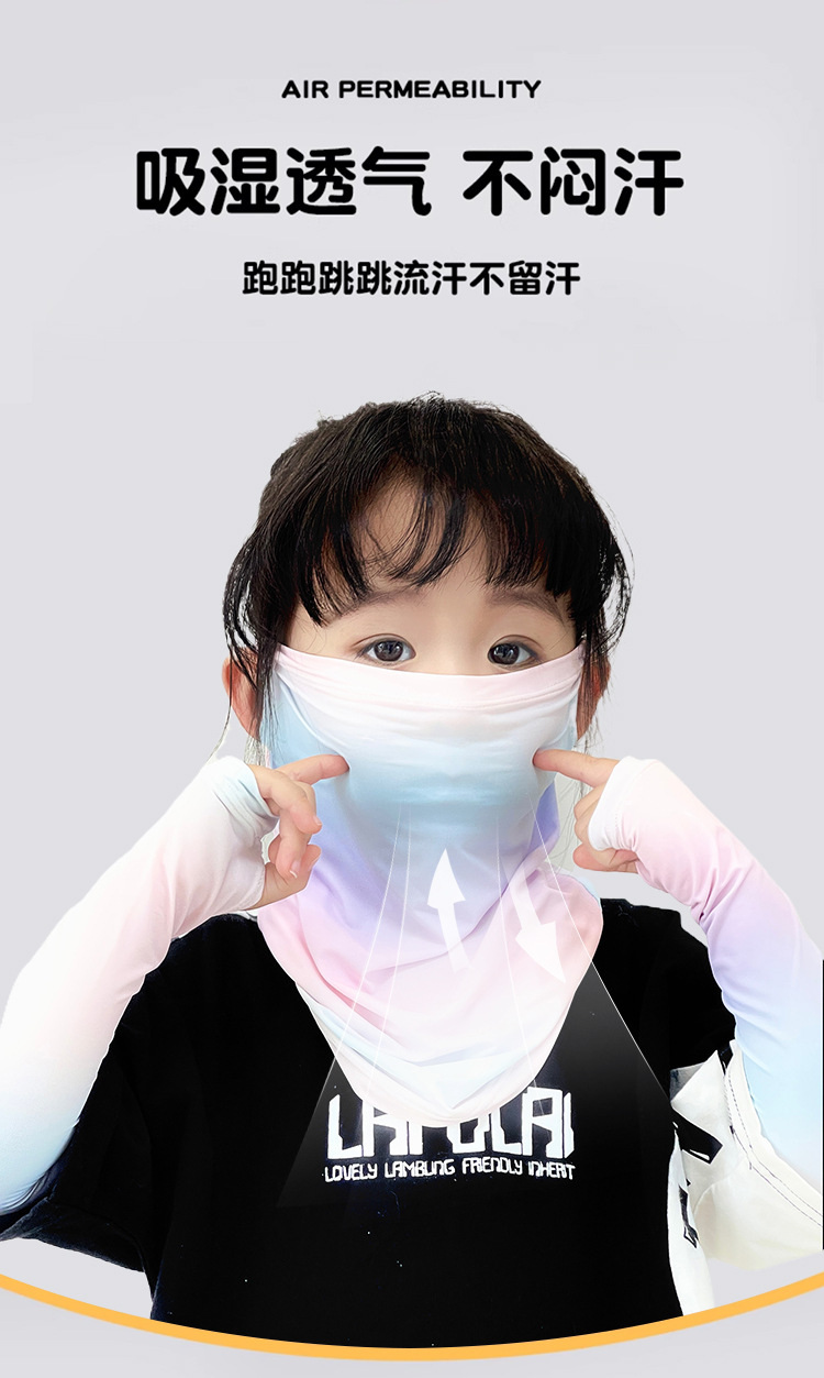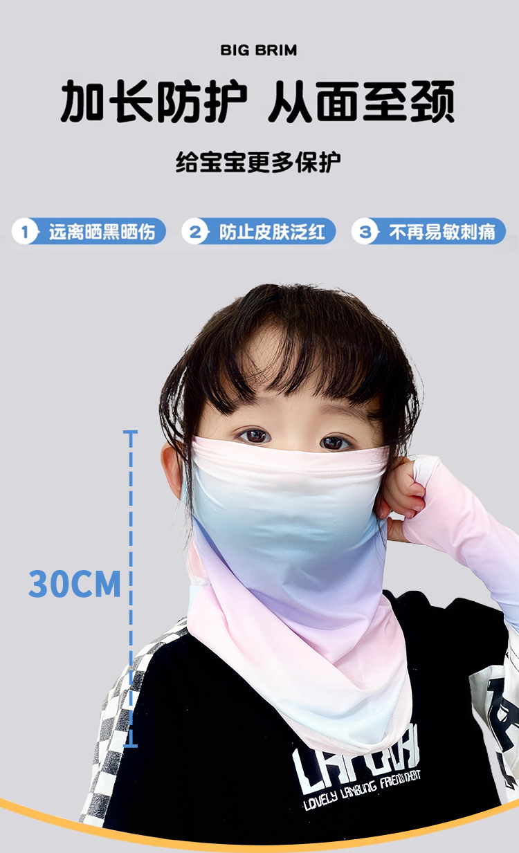 Детская солнцезащитная маска, летняя дышащая маска из ледяного шелка с защитой от ультрафиолета, защита шеи, полная защита лица, солнцезащитный шарф для девочек