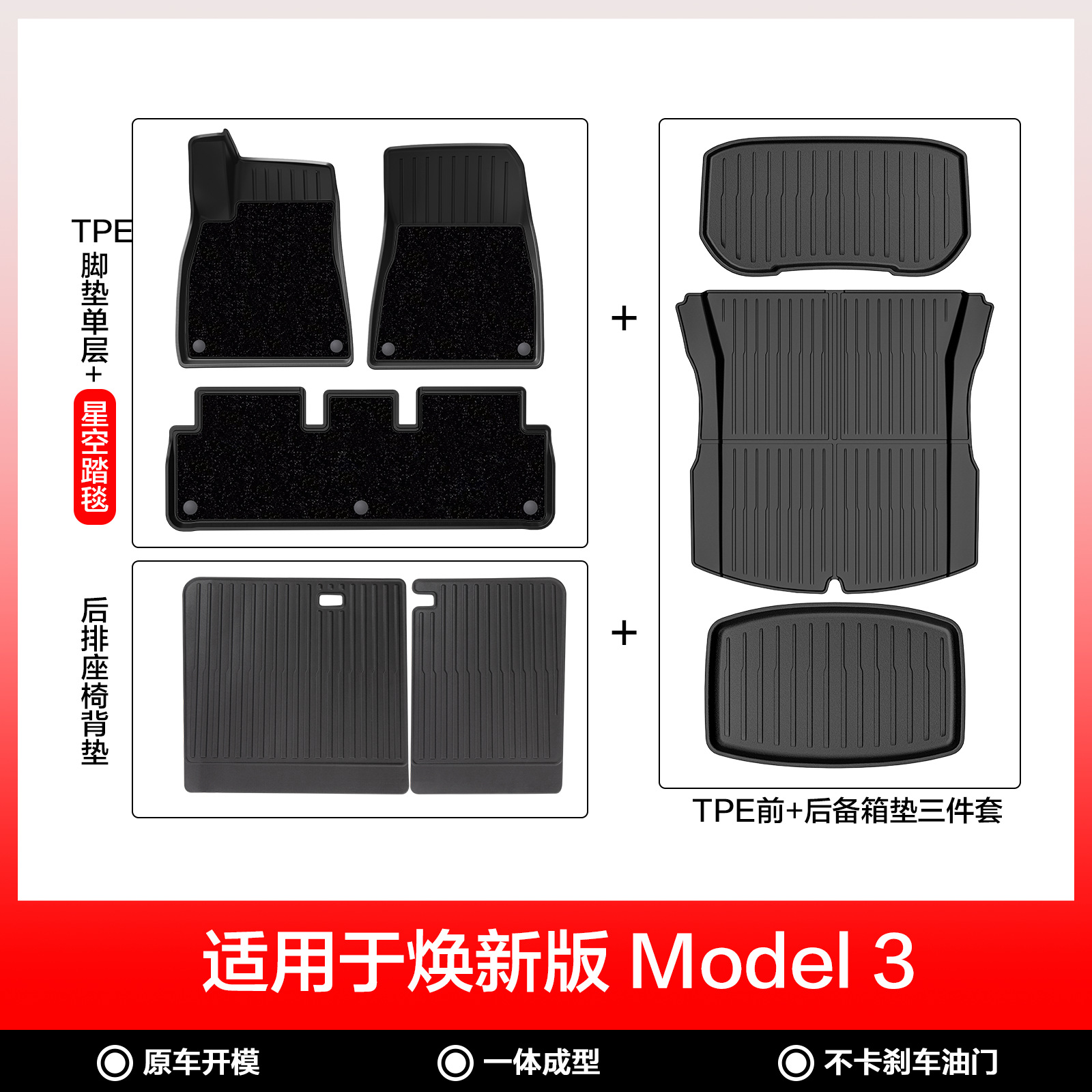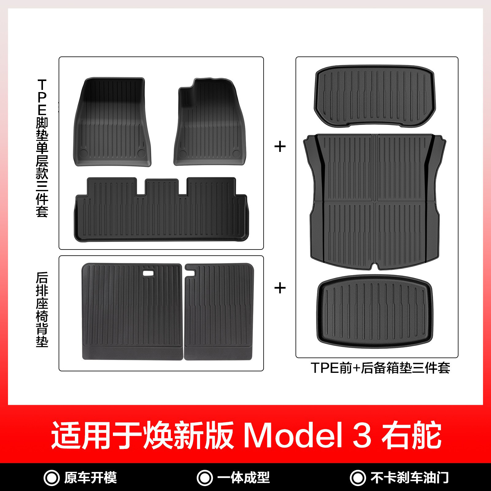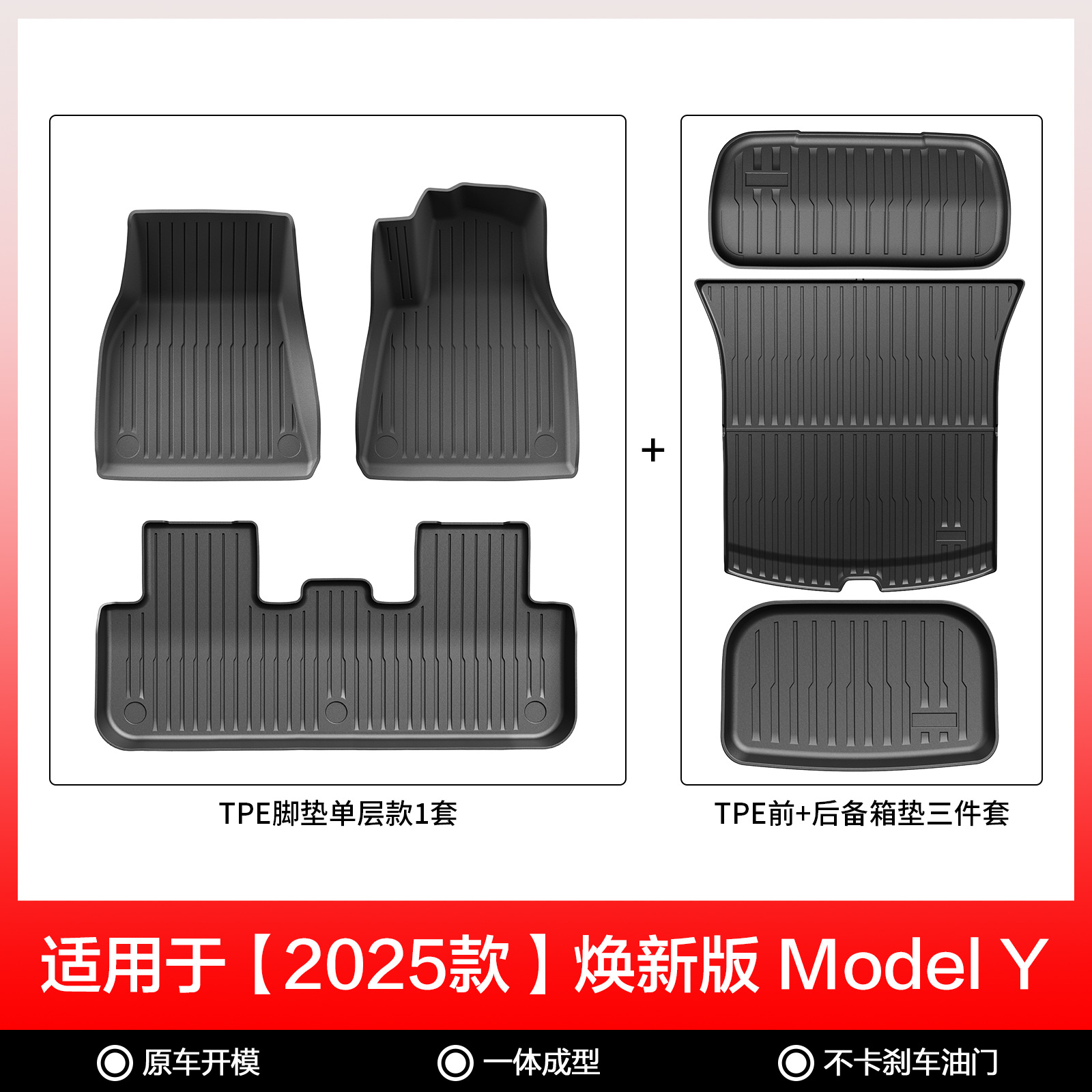 Подходит для ковриков Tesla Model 3/Y, передних и задних ковриков багажника, нового 3D-материала для литья под давлением TPE для любой погоды.