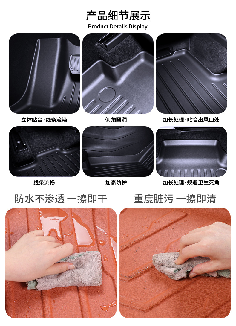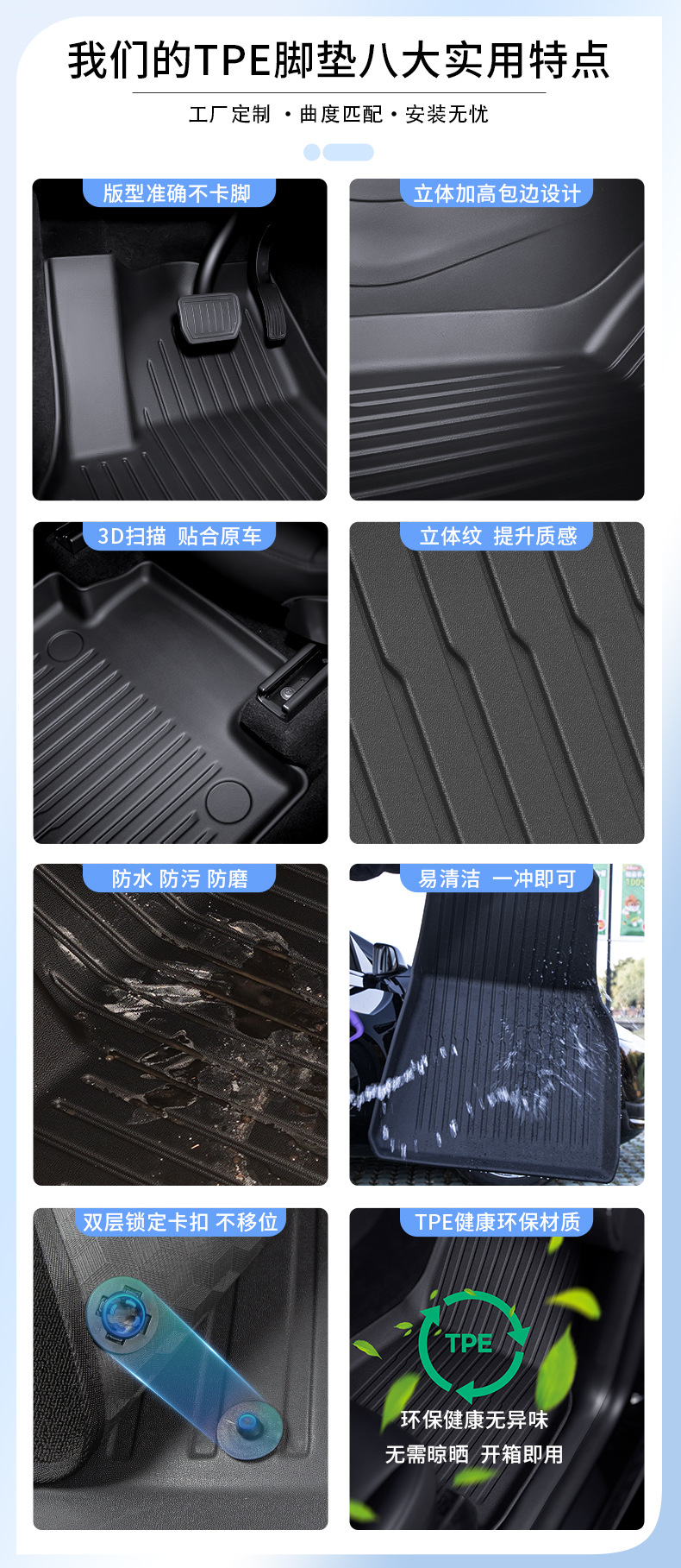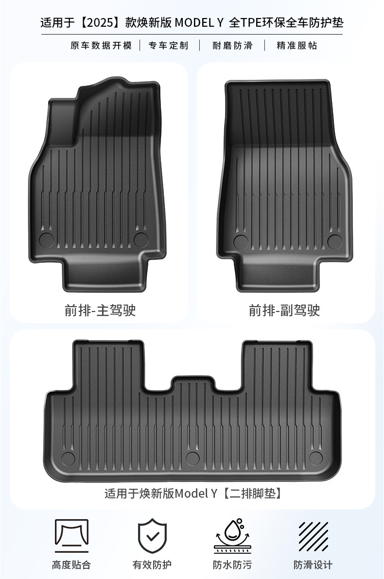 Подходит для ковриков Tesla Model 3/Y, передних и задних ковриков багажника, нового 3D-материала для литья под давлением TPE для любой погоды.