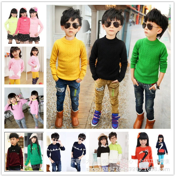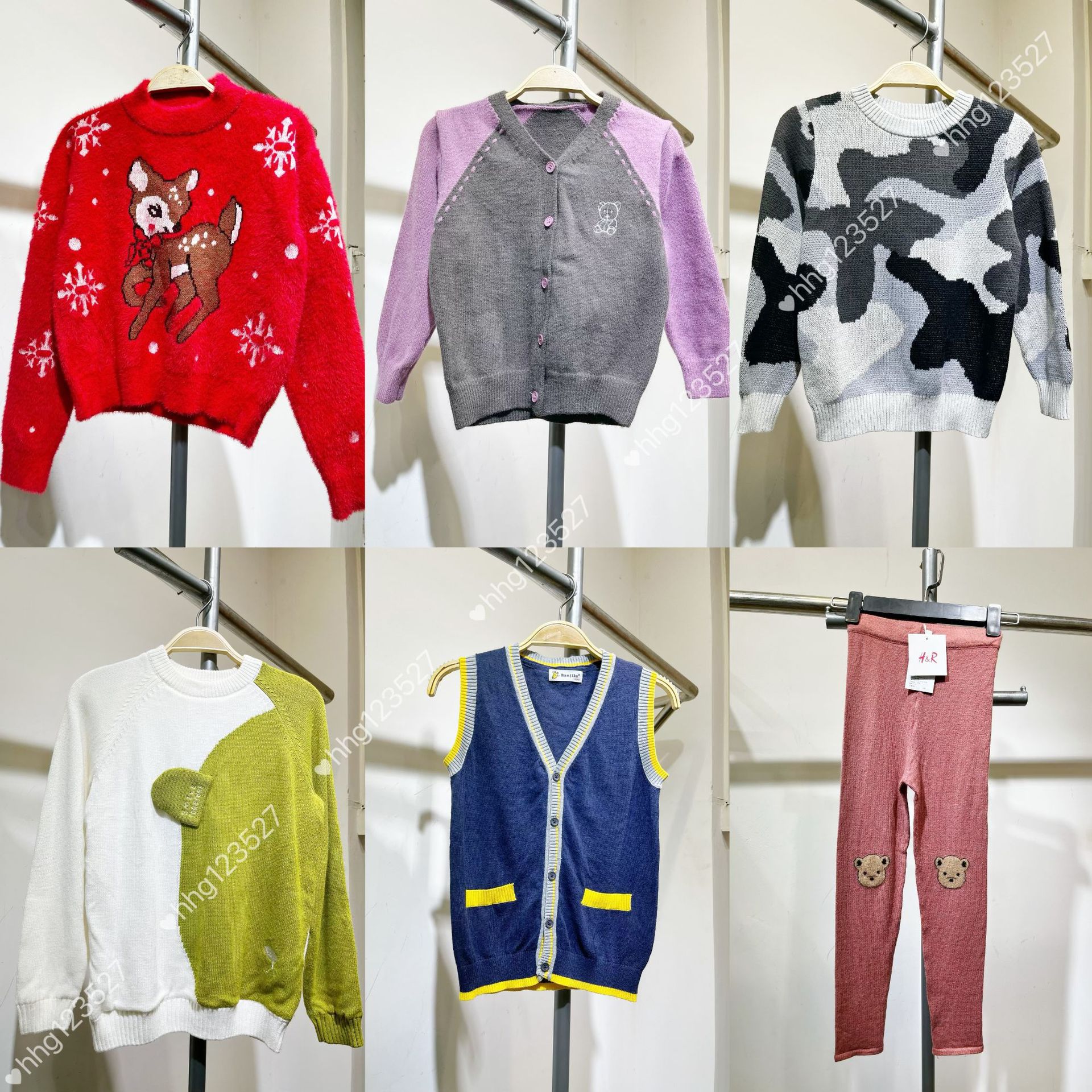 В наличии как для мальчиков, так и для девочек, в основном свитер с длинными рукавами, очень небольшой количество шерстяного жилета и шерстяных детских штанов.