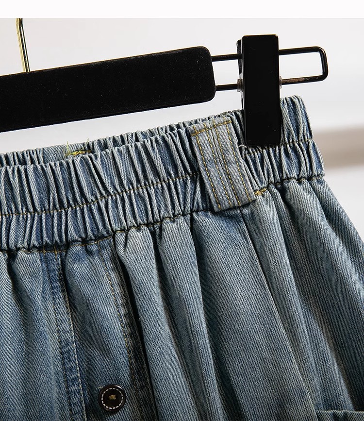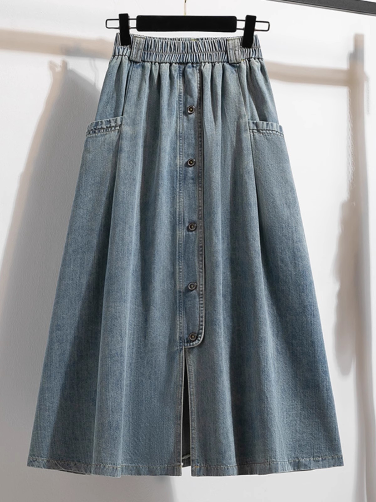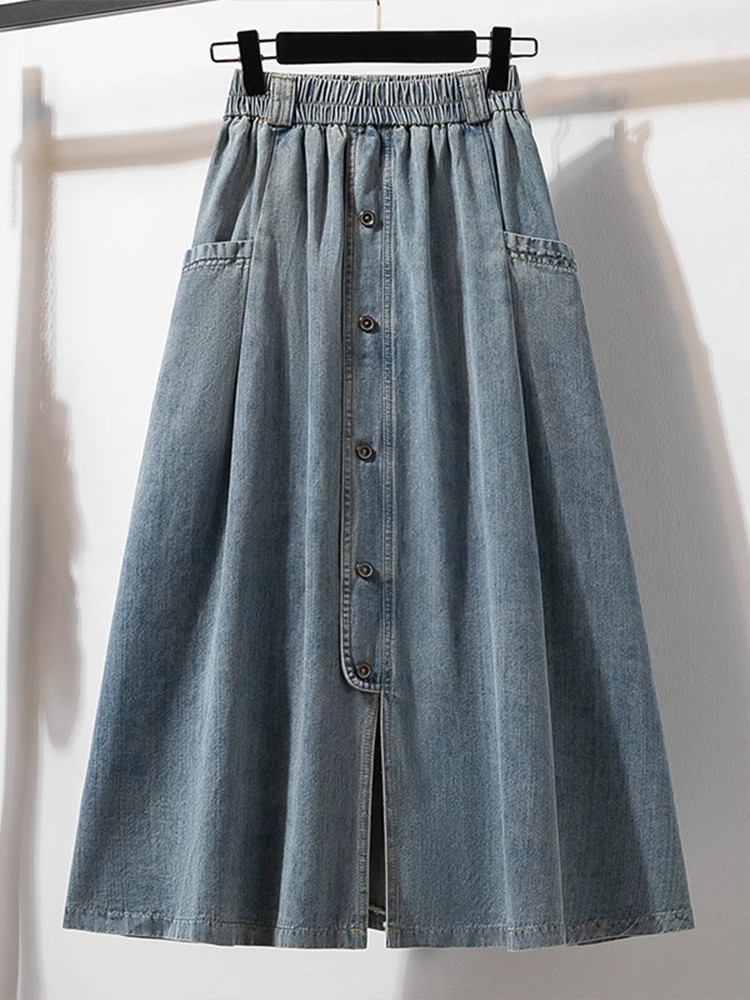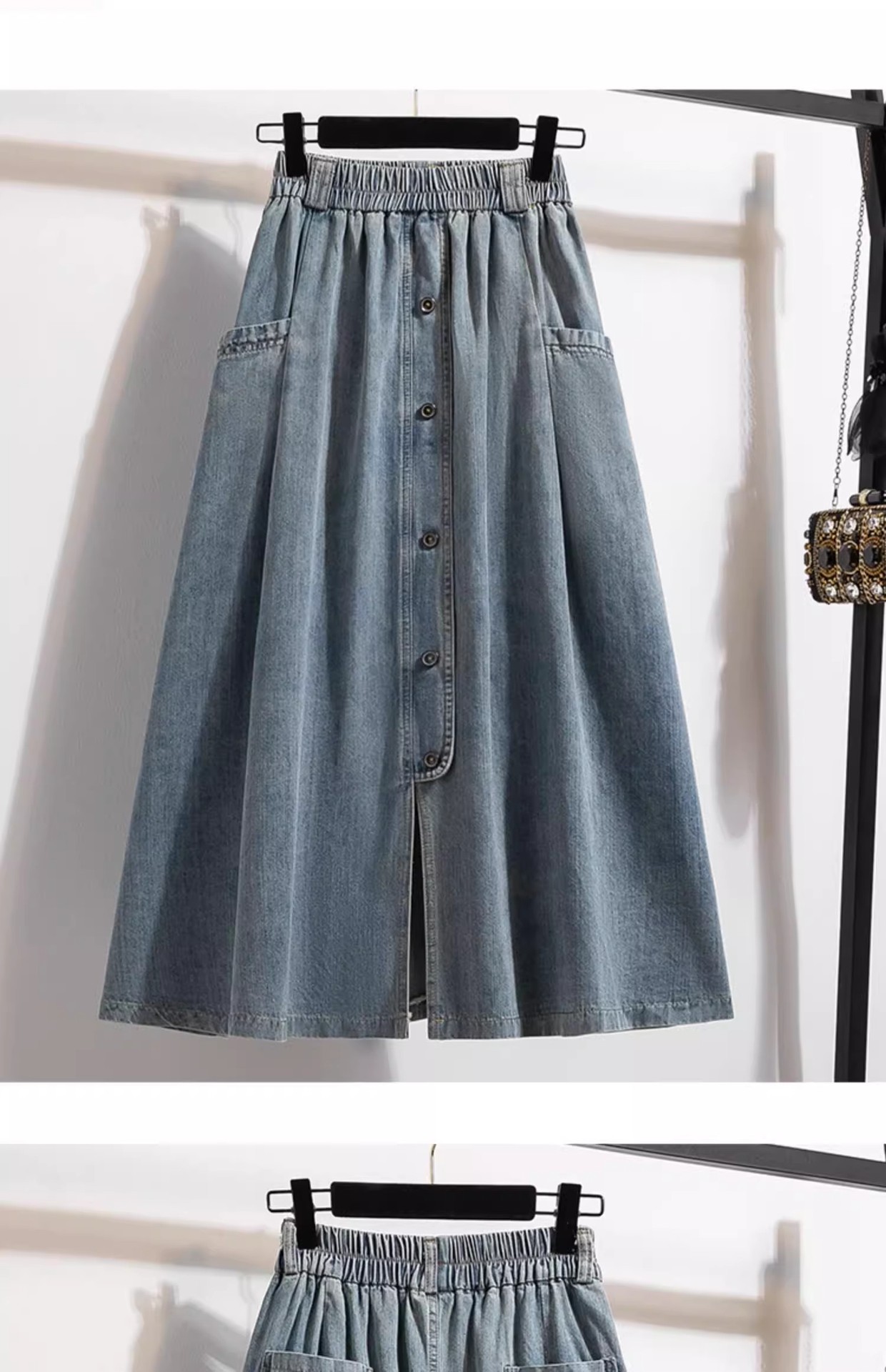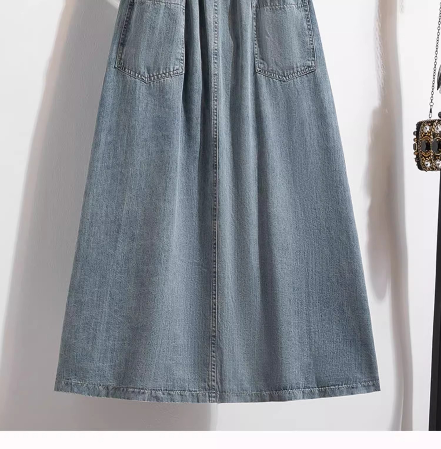 Высококачественная джинсовая юбка трапециевидной формы больших размеров для женщин на весну, классная повседневная юбка для похудения, закрывающая живот, для маленьких людей