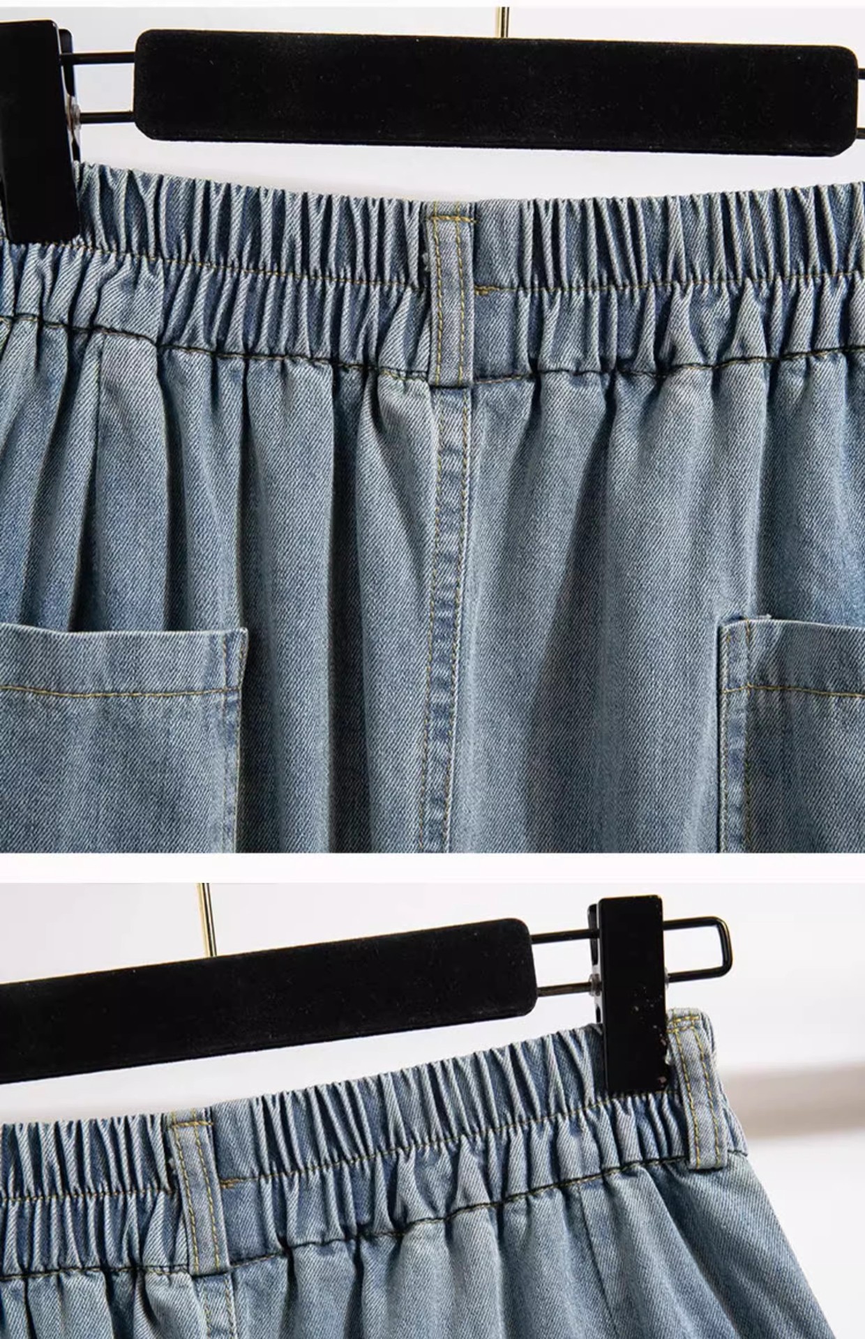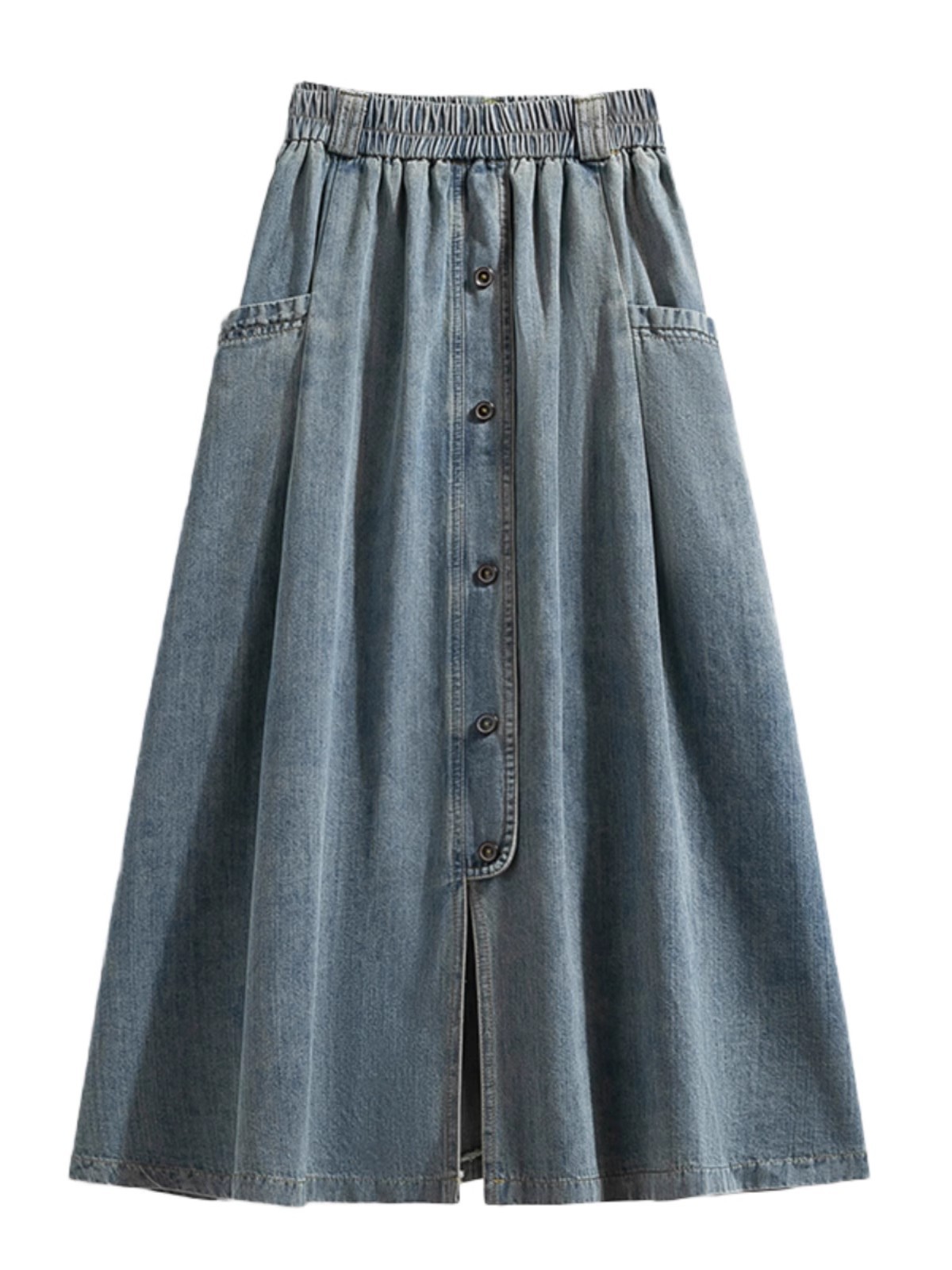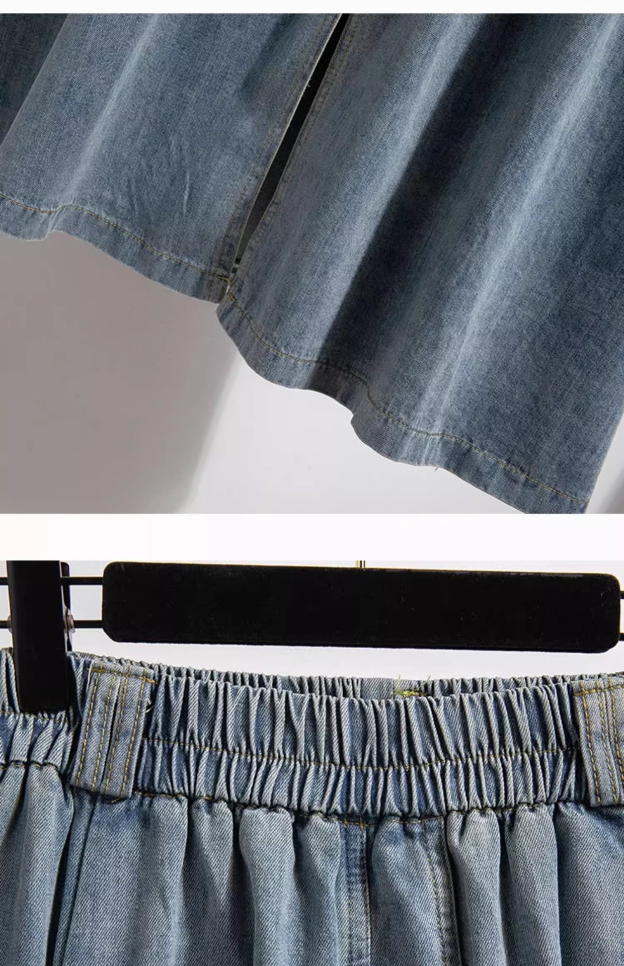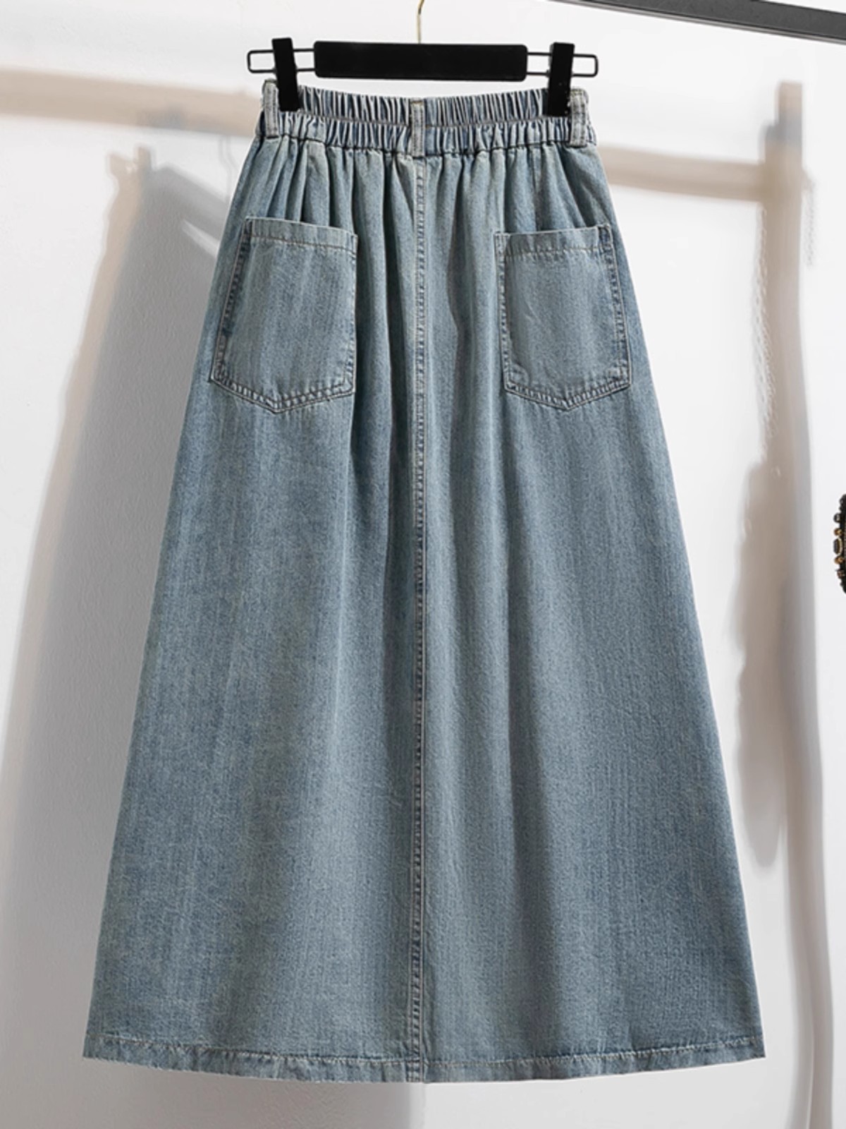 Высококачественная джинсовая юбка трапециевидной формы больших размеров для женщин на весну, классная повседневная юбка для похудения, закрывающая живот, для маленьких людей