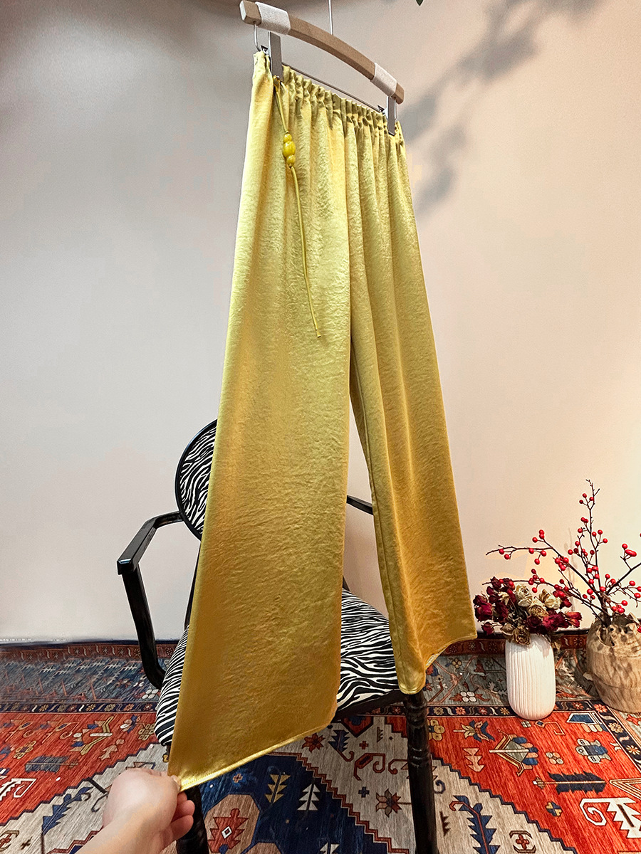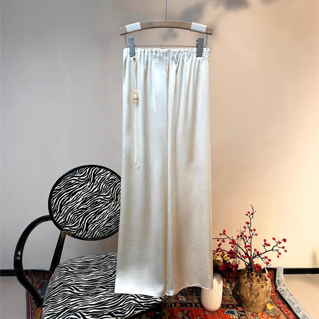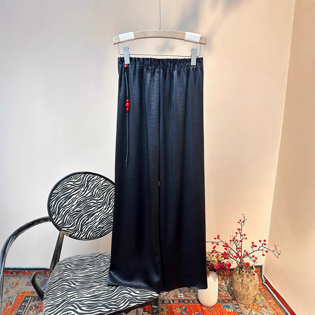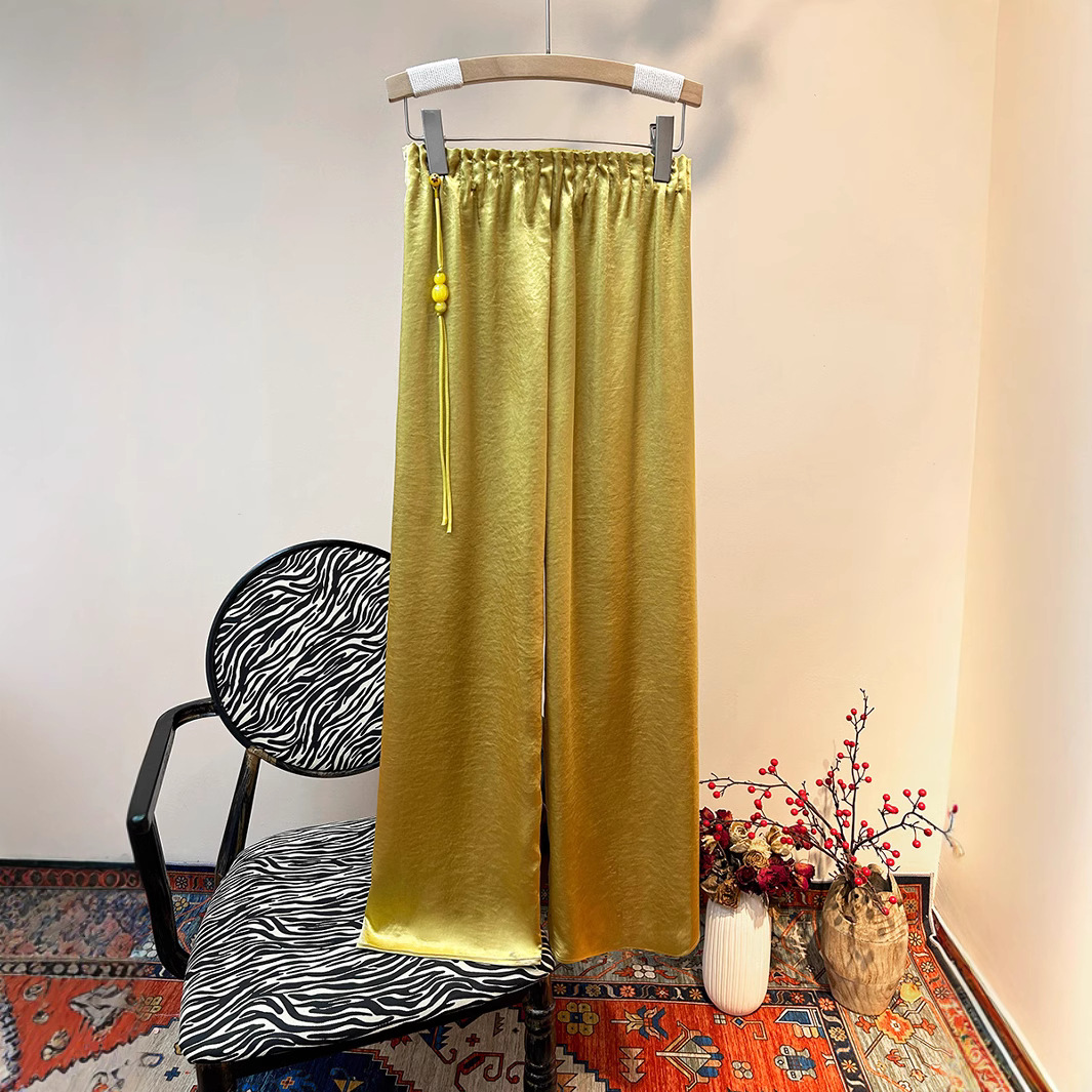 Кулон из тыквы глянцевые брюки с подвеской 2025 новая новая мода с высокой талией повседневные темпераментные прямые брюки весной
