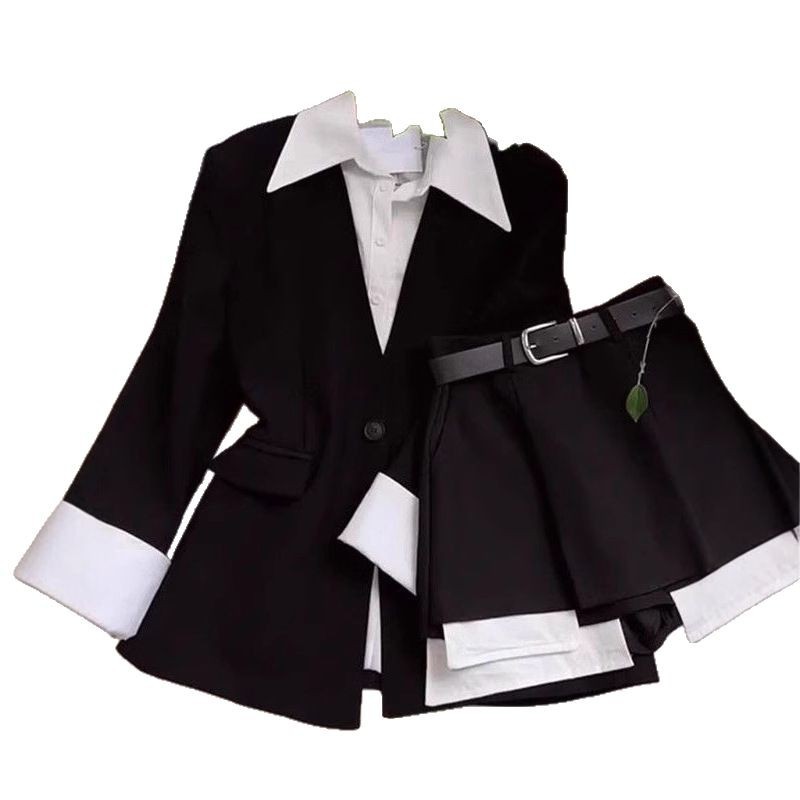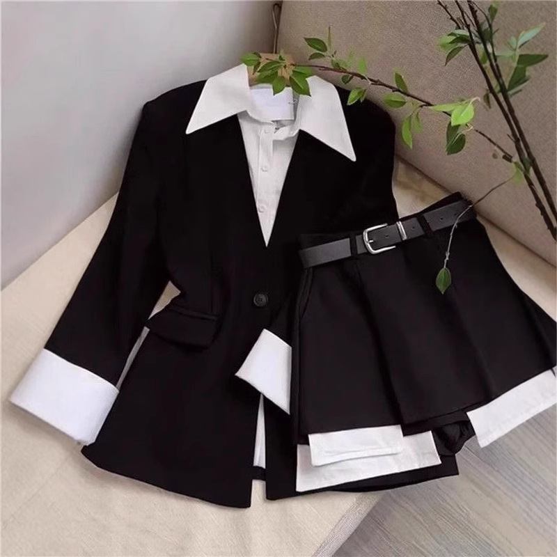 Элегантный комплект для девочек в стиле сестры: пиджак средней длины и юбка-брюки с высокой талией.