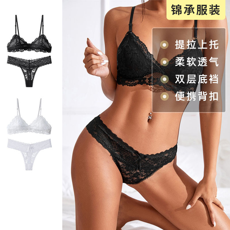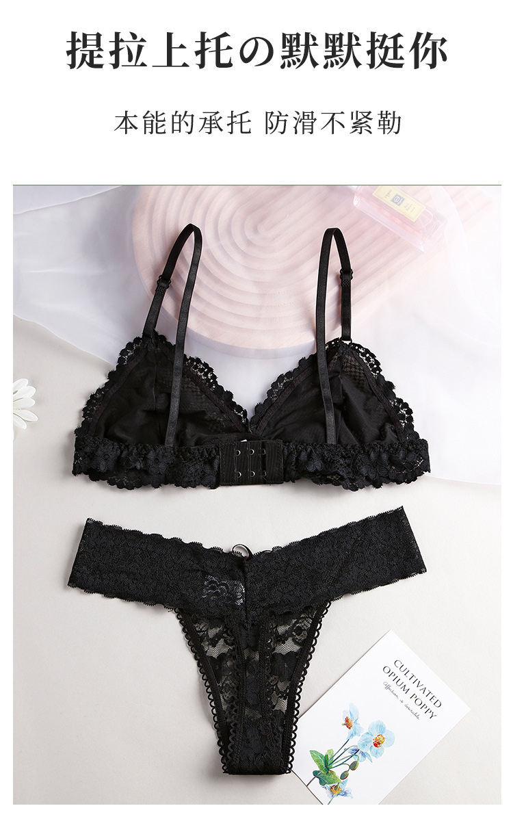 Французское кружево, сексуальный комплект нижнего белья для женщин с глубоким V-образным вырезом, ультратонкий, бесшовный, с красивой спинкой, кружевные стринги с вырезами