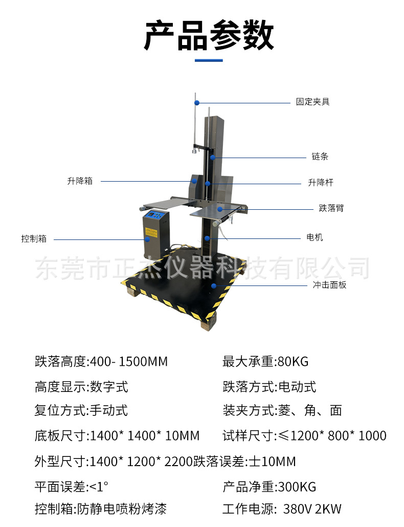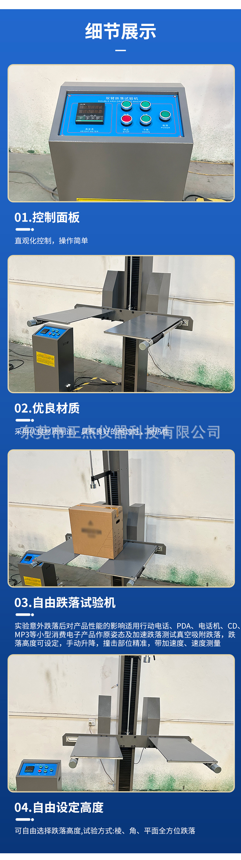 Он используется для оценки степени воздействия на детали упаковки при падении во время фактической транспортировки, погрузки и разгрузки, а также для определения ударной прочности и рациональности конструкции деталей упаковки.
