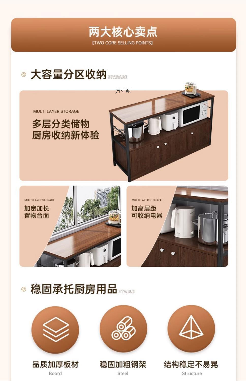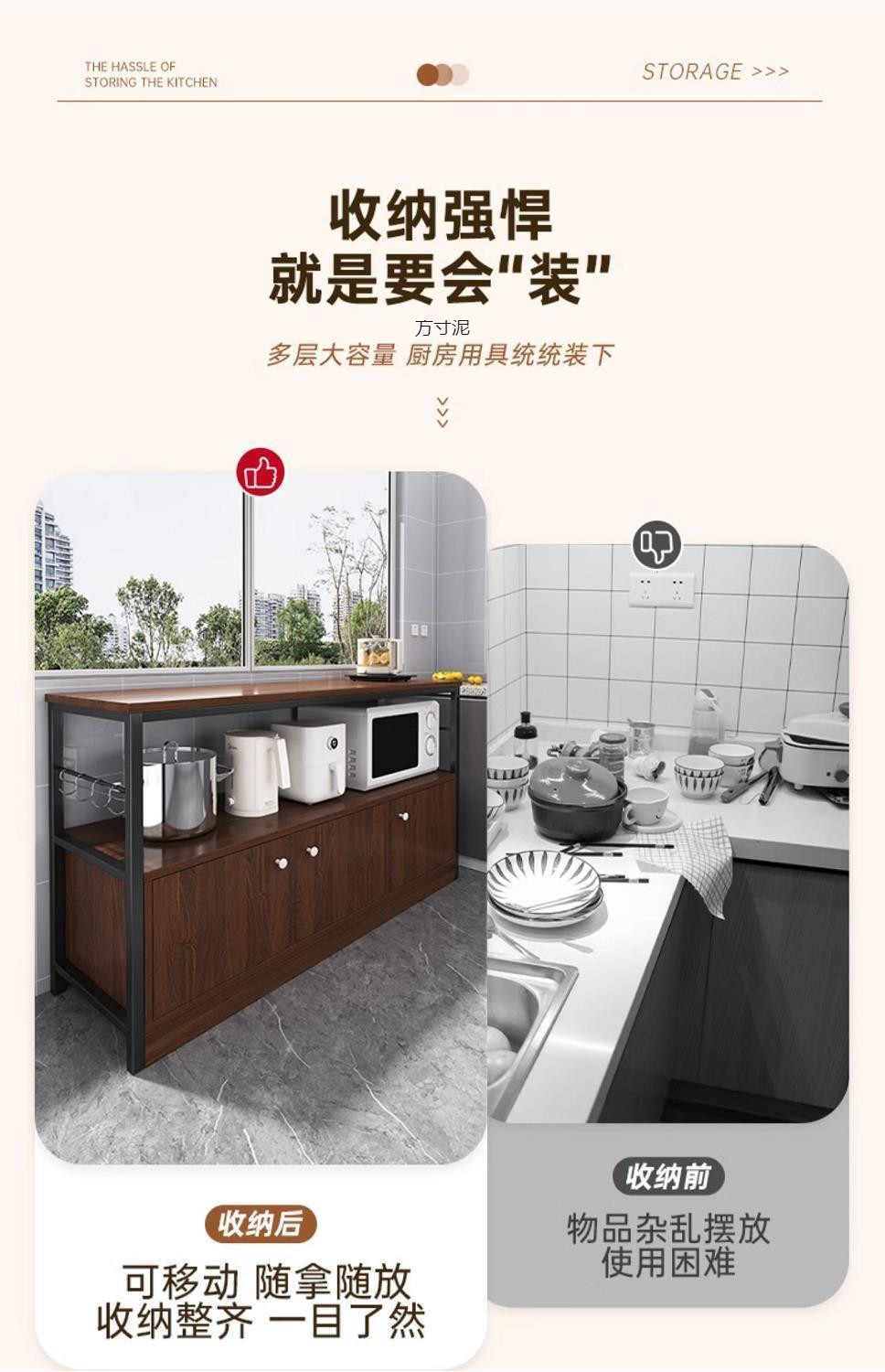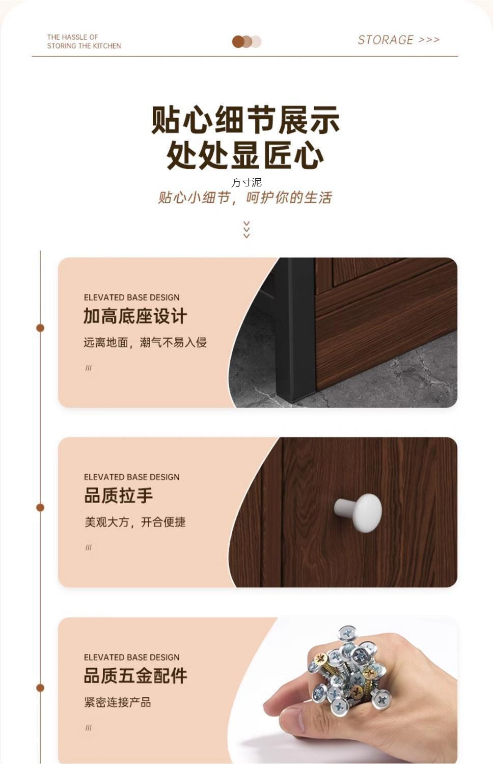 Новая модель 2025 года: современный комод с столешницей из нержавеющей стали, трехъярусными ящиками и складной дверцей для хранения в столовой