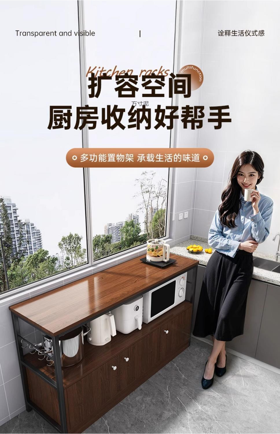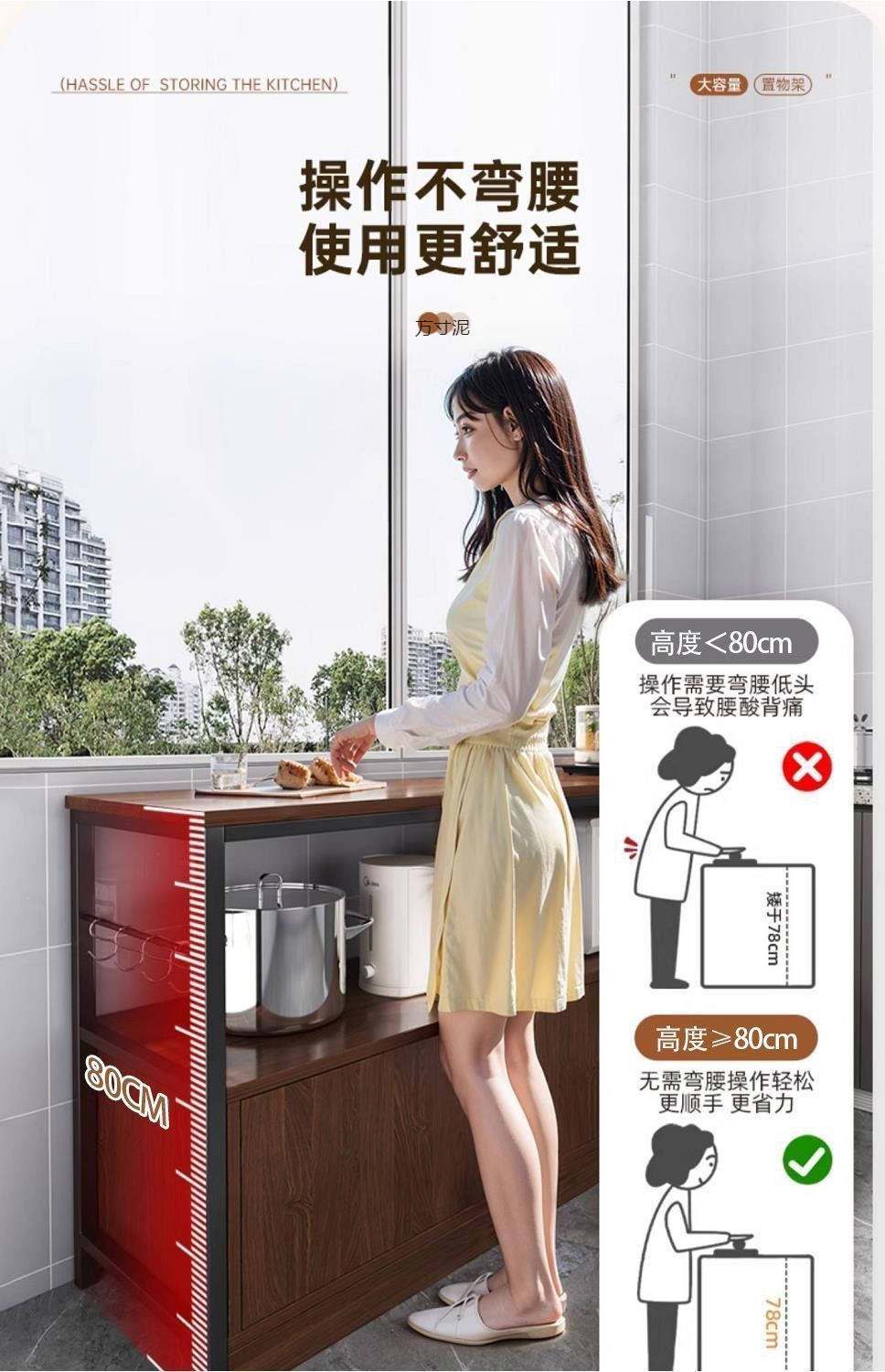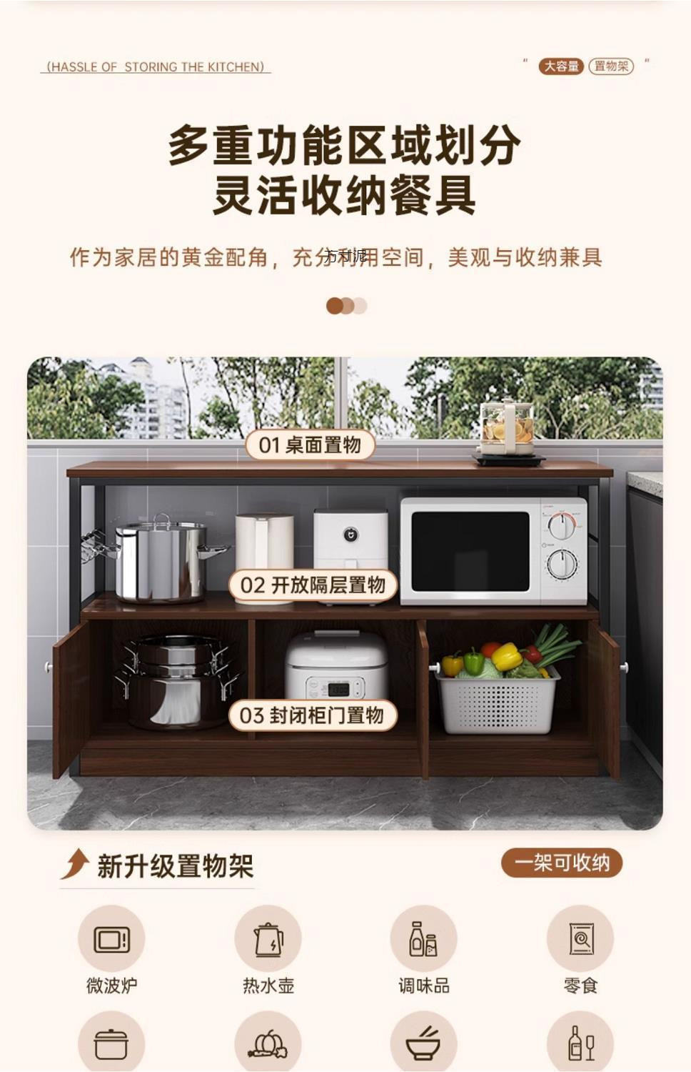 Новая модель 2025 года: современный комод с столешницей из нержавеющей стали, трехъярусными ящиками и складной дверцей для хранения в столовой