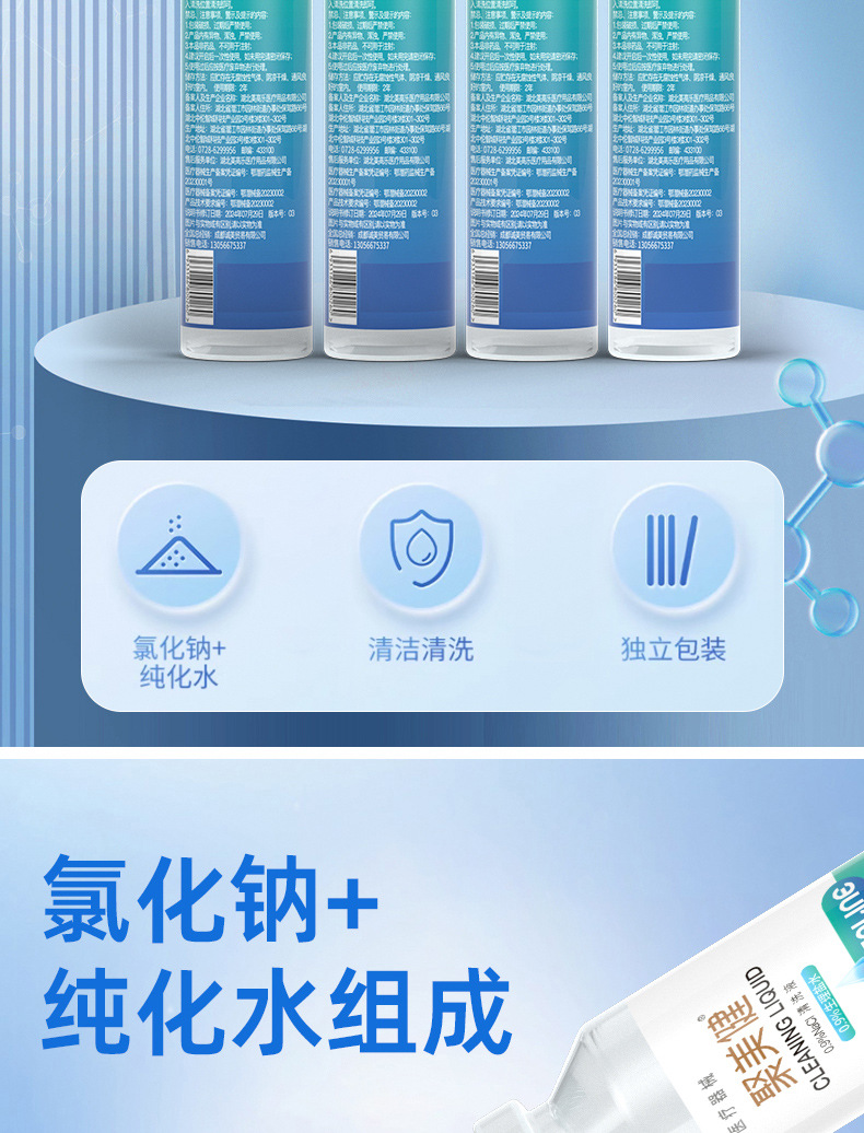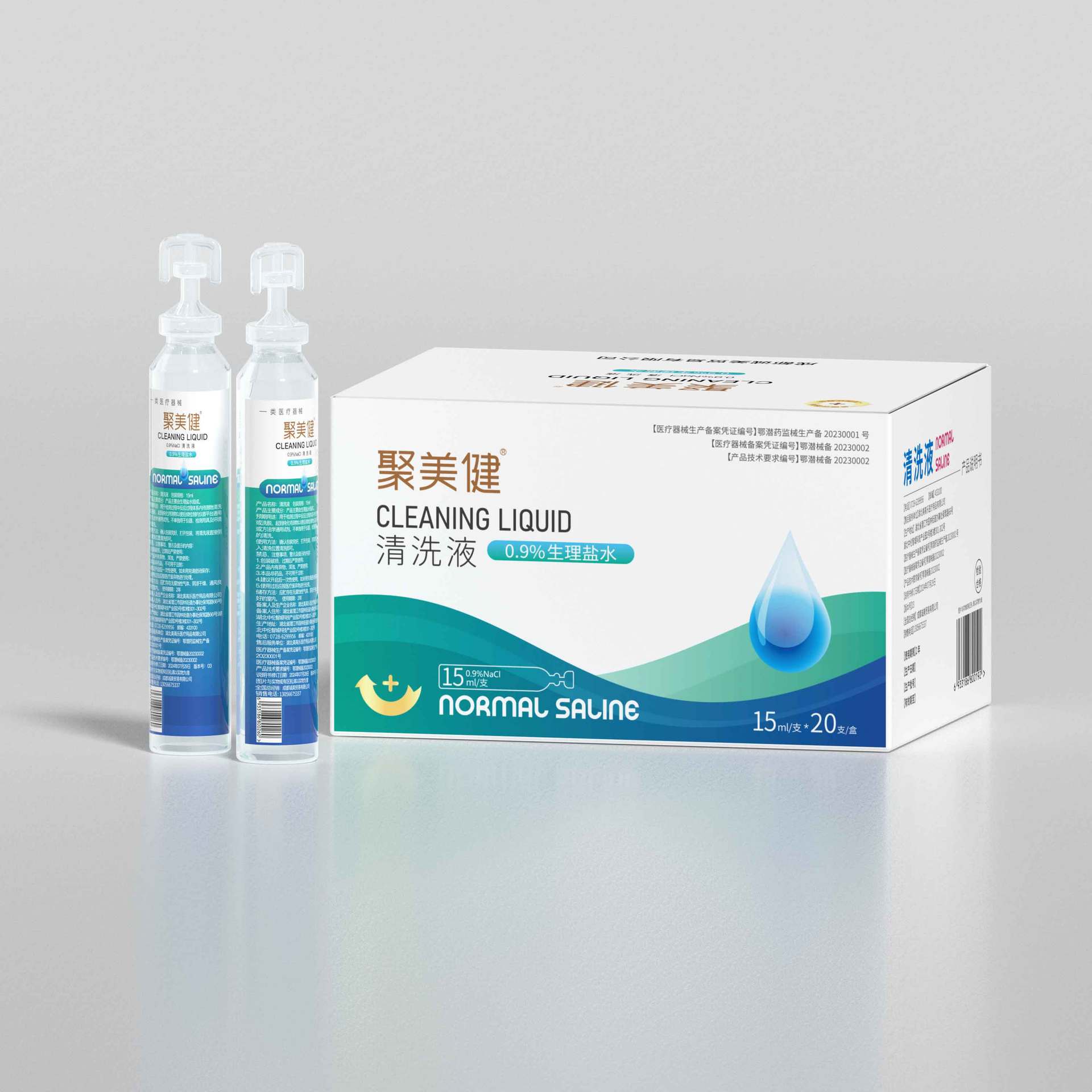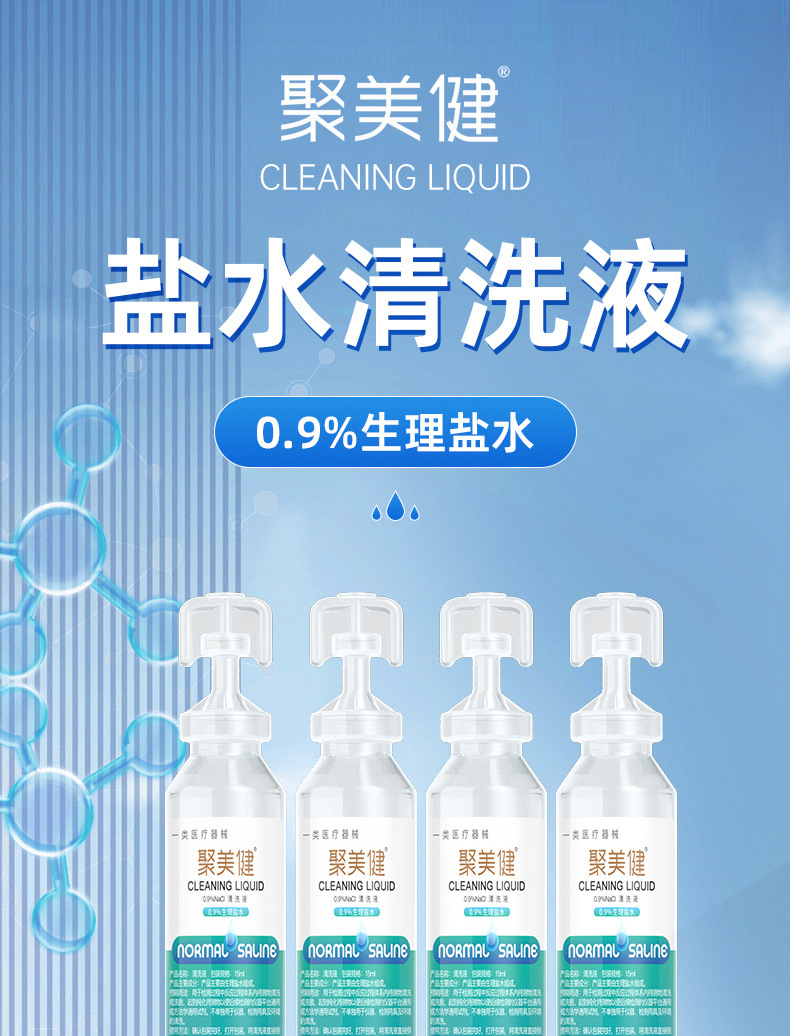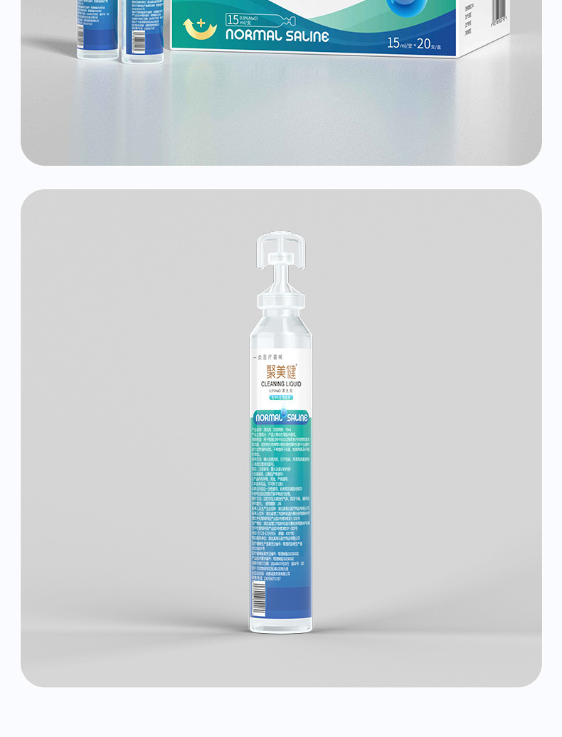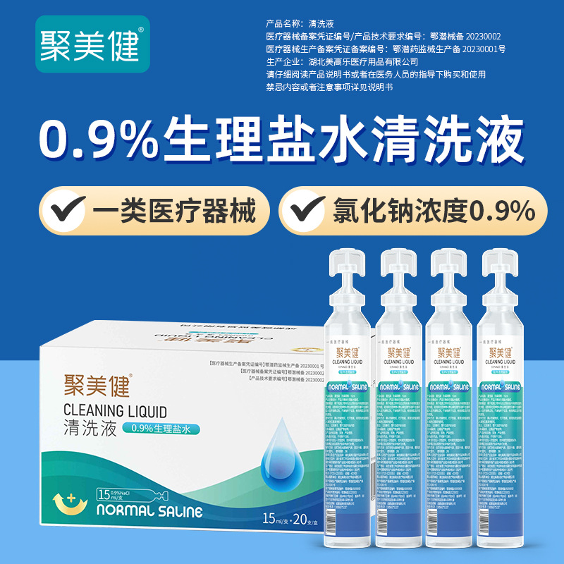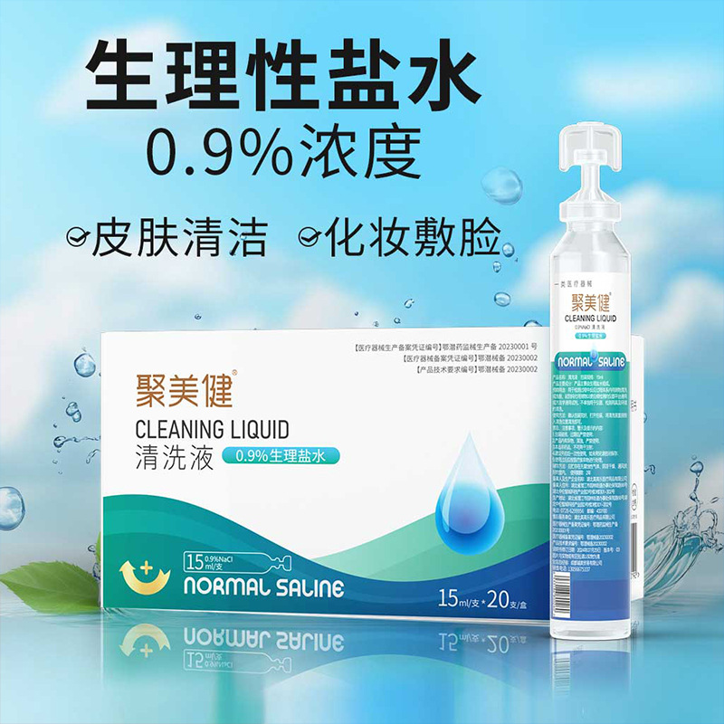 Раствор для очистки Jumeijian, физиологический солевой раствор 0,9% концентрации, 15 мл/тюбик*20 тюбиков/упаковка, медицинское изделие