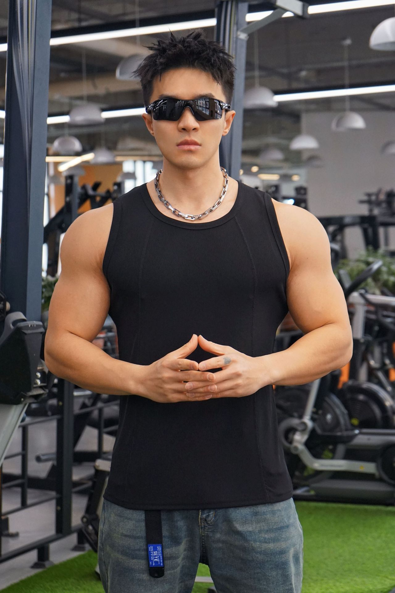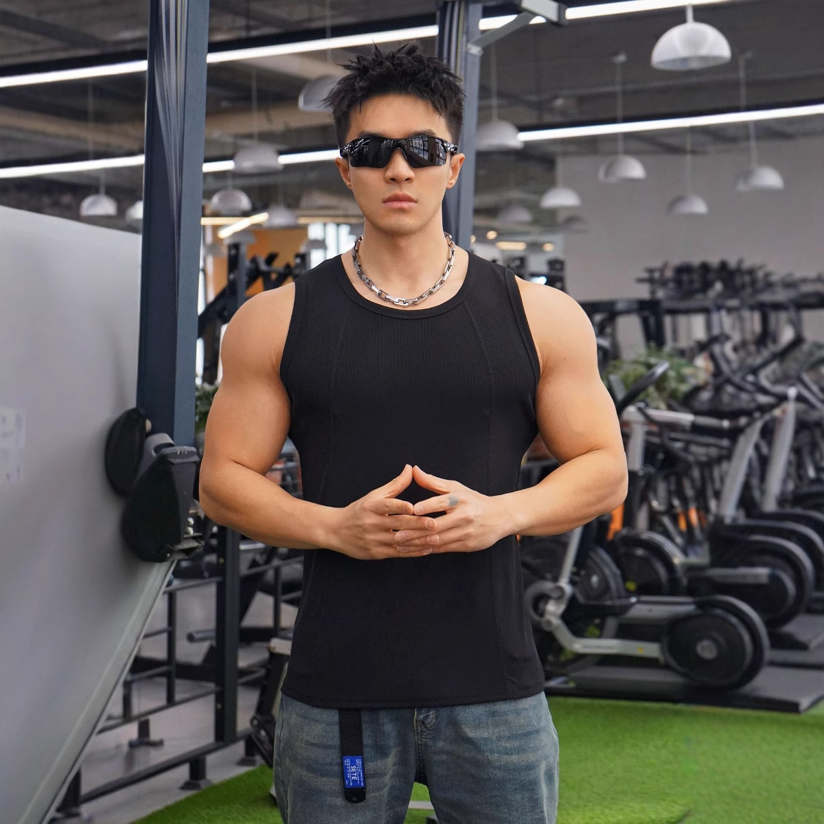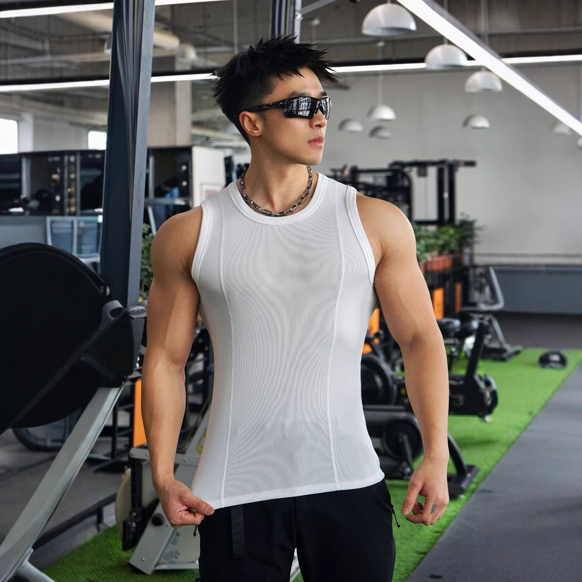 Новый мужской жилет для бега на открытом воздухе, тренировок, спорта, фитнеса, крутой шелковый хлопковый дышащий однотонный топ для глажки