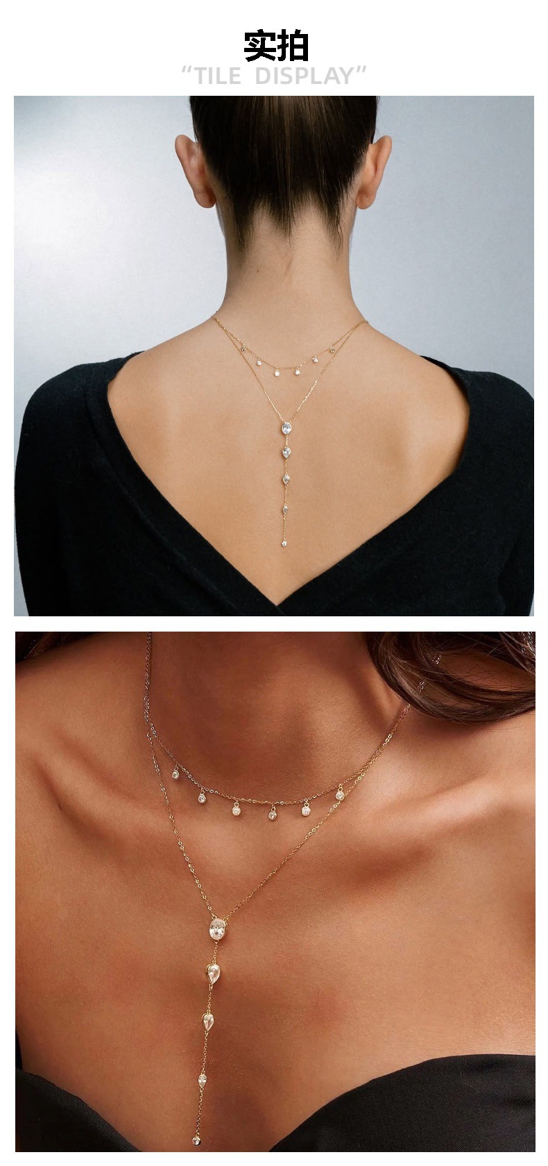 Новый трансграничный продукт, многослойная цепочка с цирконом на спине, европейская и американская мода, высококачественное ожерелье с каплями воды, цепочка на ключицу, женское ожерелье
