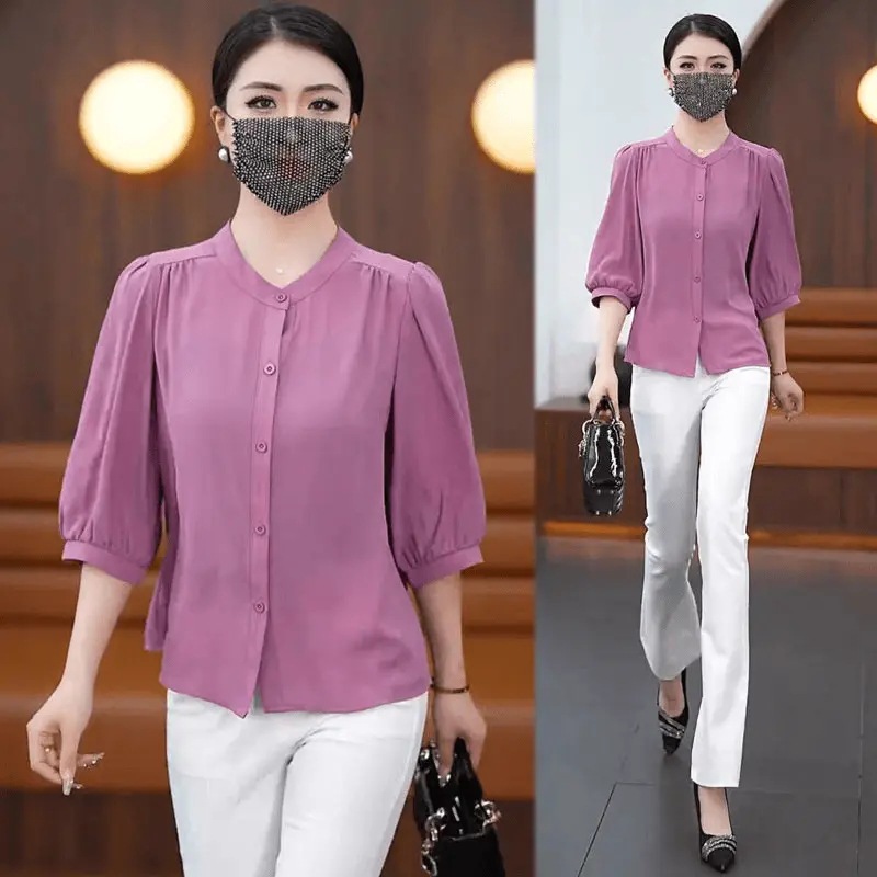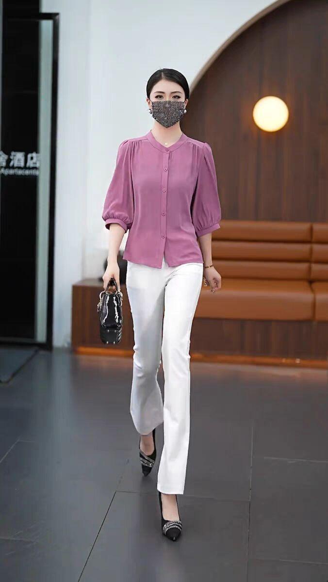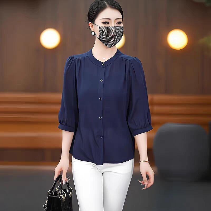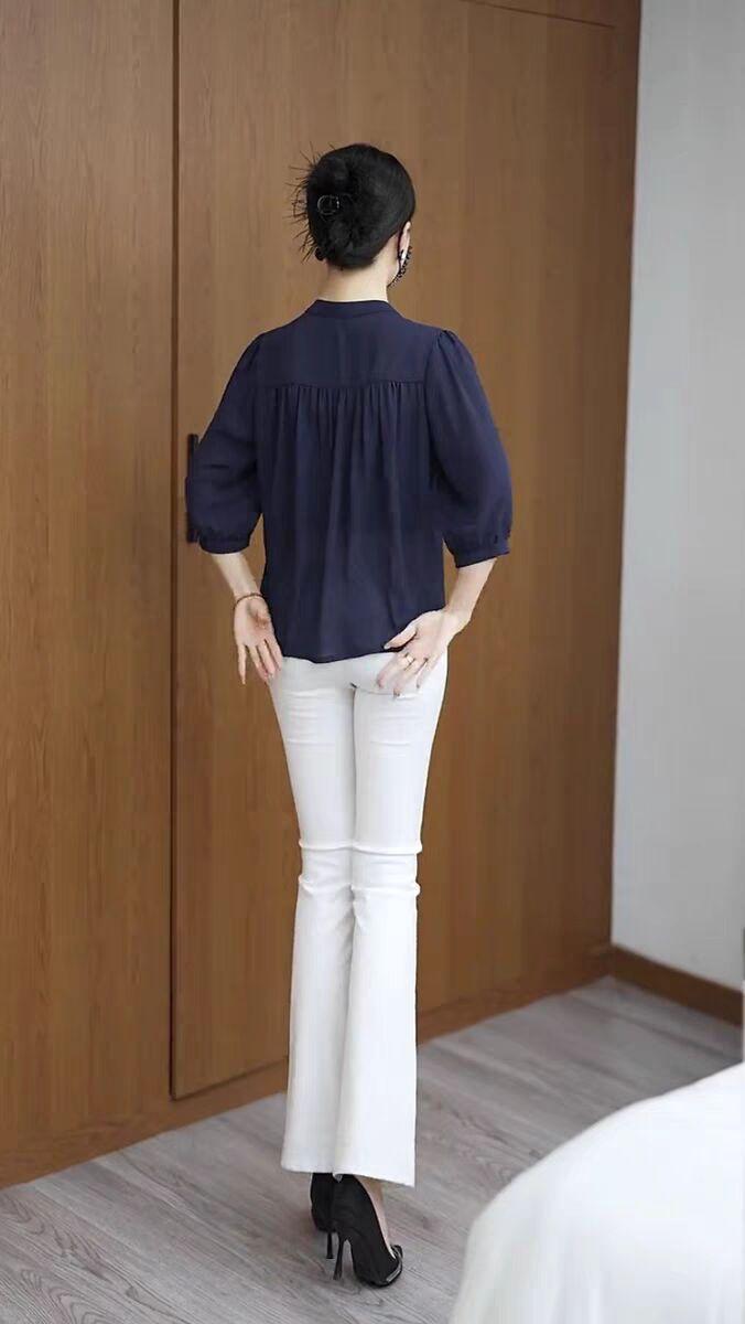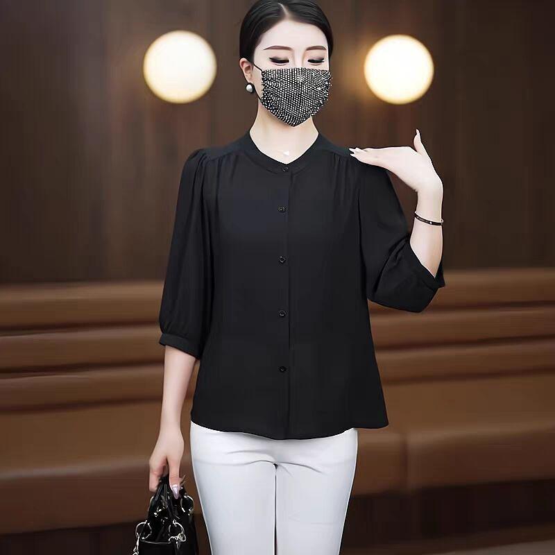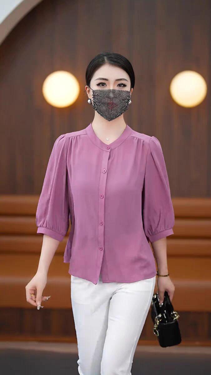 Весна и лето 2025 тонкий модный средний рукав ледяной шелковый топ толстый бровь