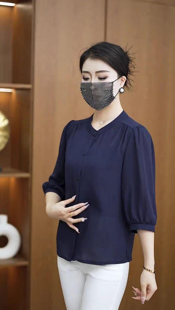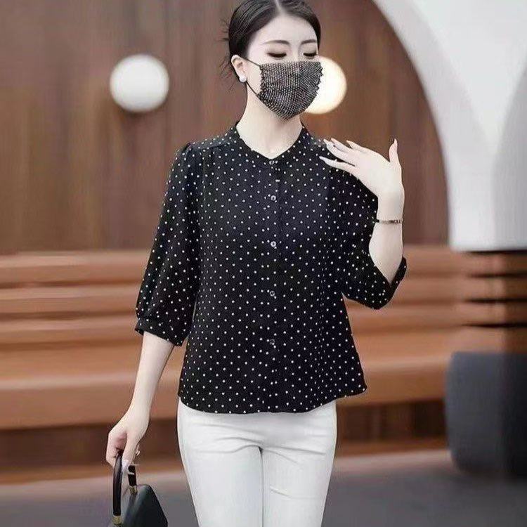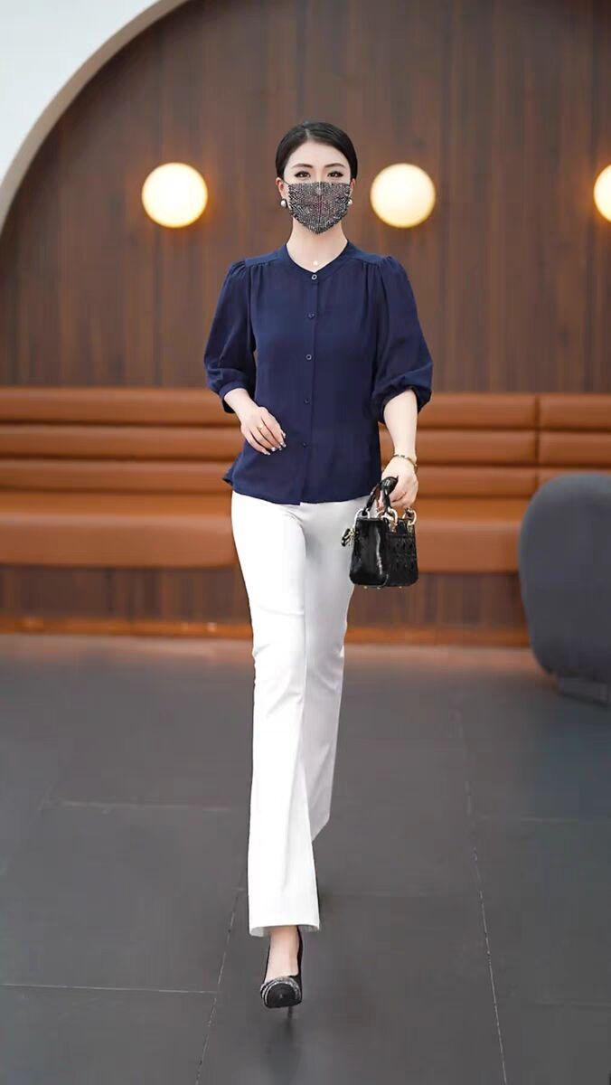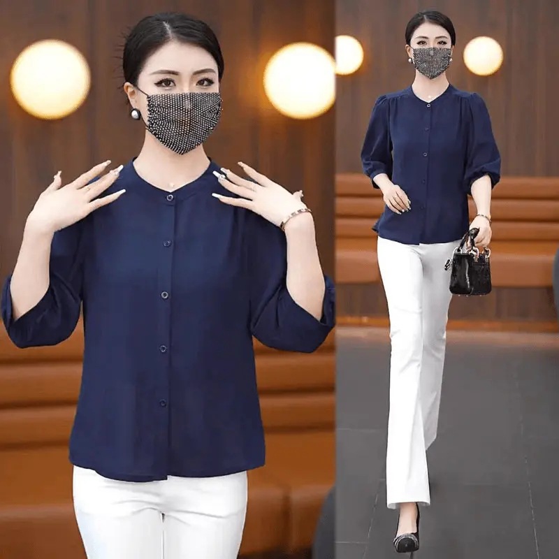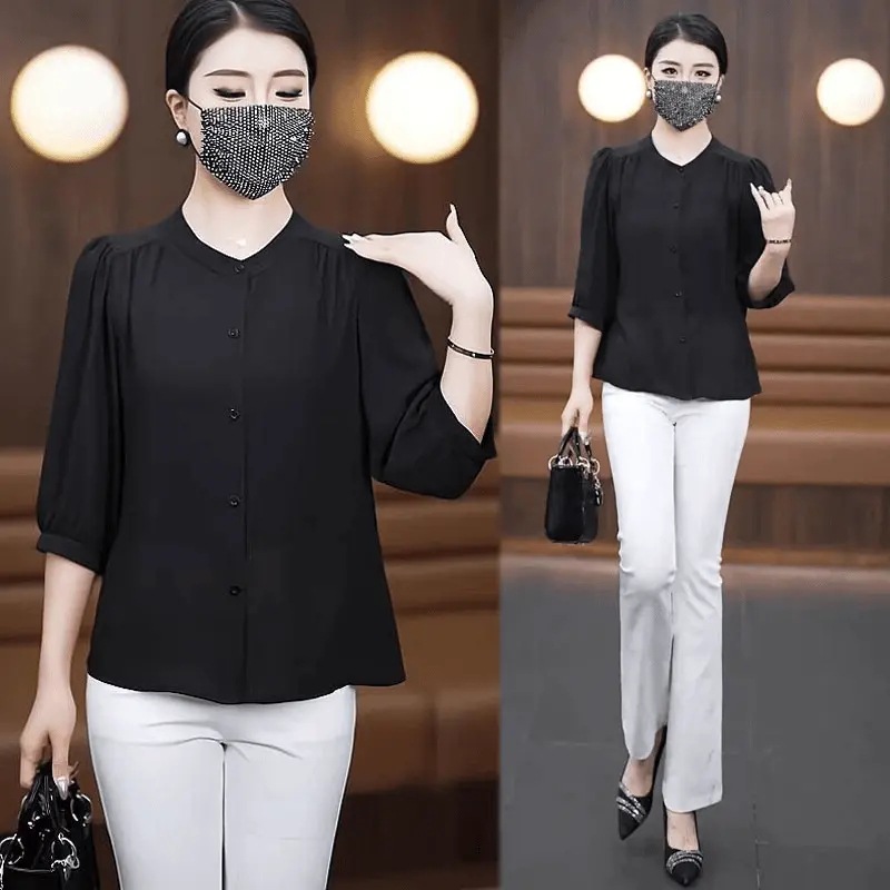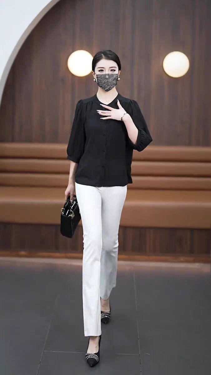 Весна и лето 2025 тонкий модный средний рукав ледяной шелковый топ толстый бровь