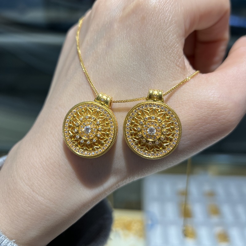 Подвеска-компас из золота 18 карат (Au750) с изображением подсолнуха, розовое золото, роскошная, высококачественная, универсальная цепочка на ключицы