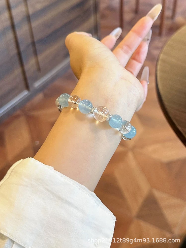 Белый кристалл 8 мм + аквамарин; Белый кристалл 10 мм + аквамарин; Белый кристалл 12 мм + аквамарин