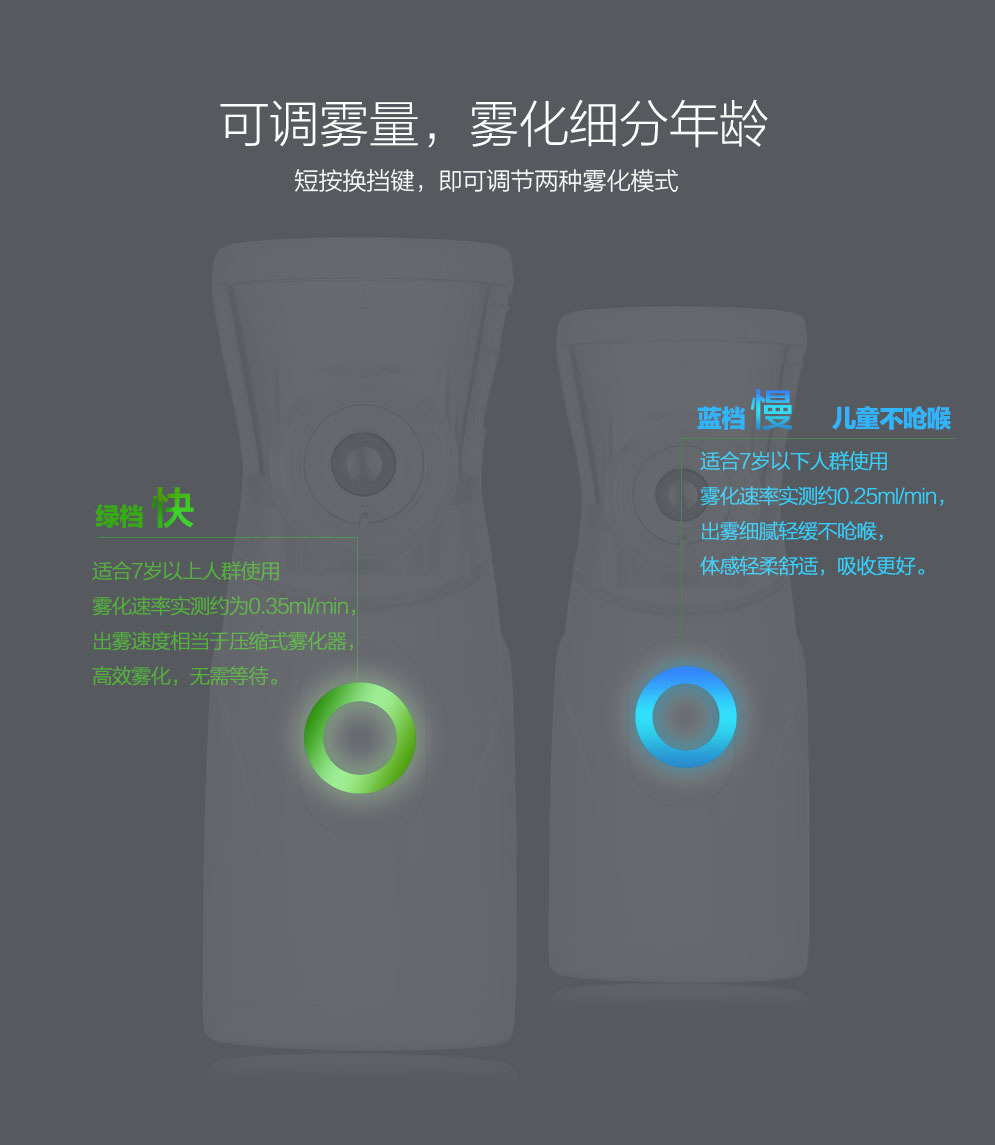 出雾速率:绿档0.5mL/min 蓝档0.3mL /min