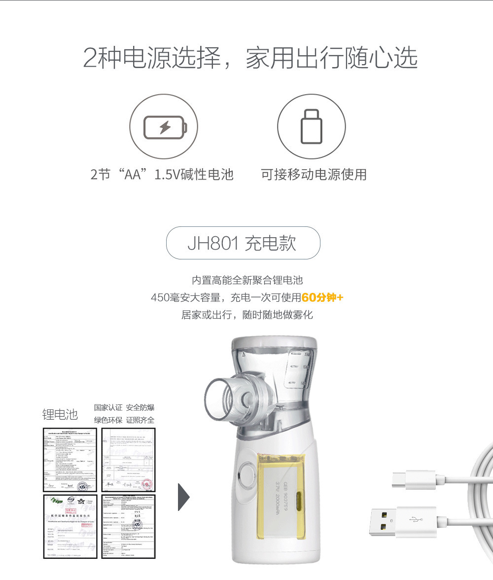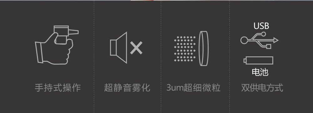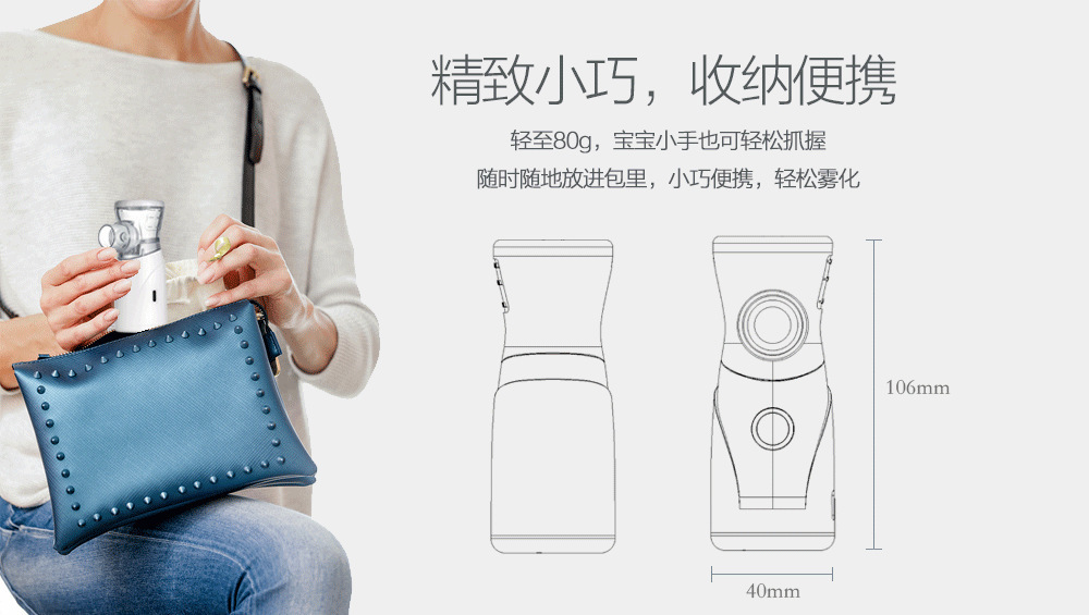 1.科学设计:手持网络式,小巧轻便,外出方便携带,随时随地,轻松雾化