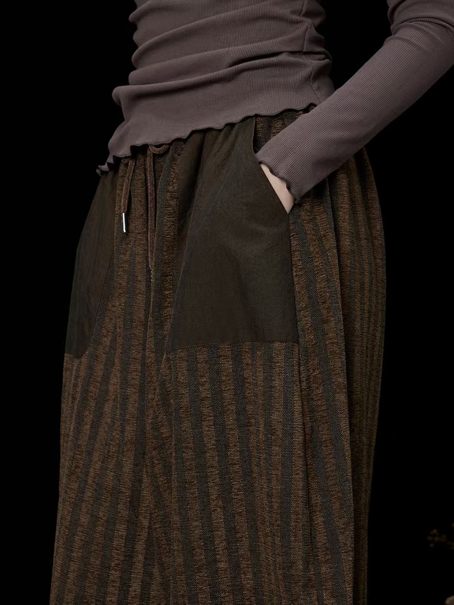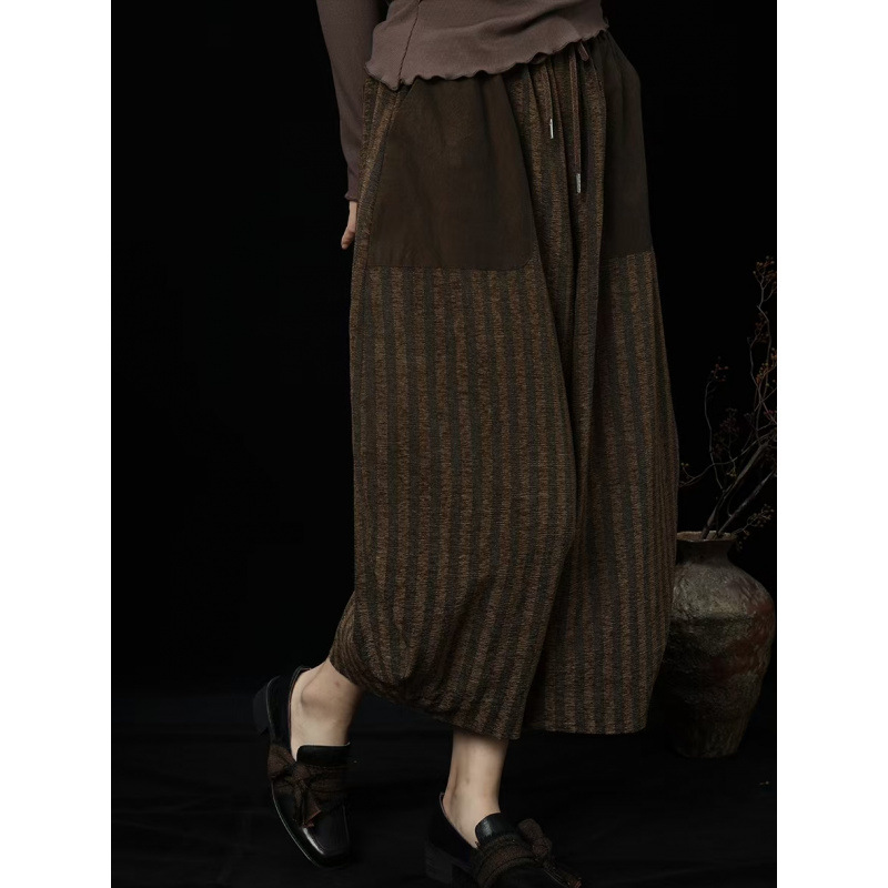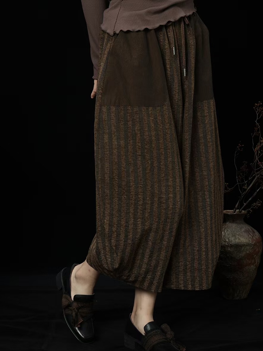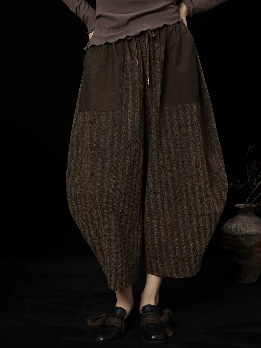 В наличии новые винтажные вельветовые полосатые нишевые брюки-шаровары в китайском стиле с художественной вазой