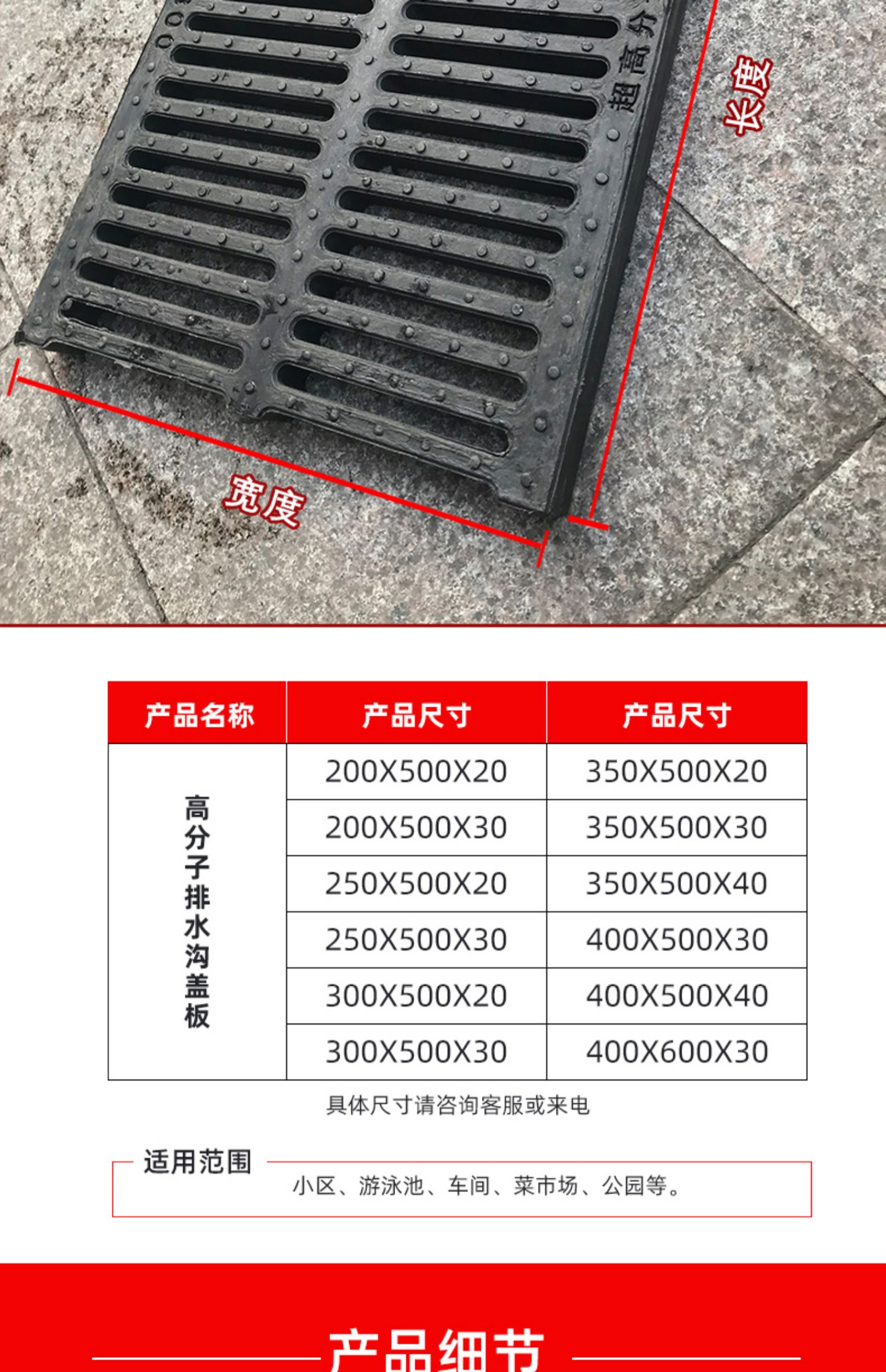 Крышка канализационная для кухни, дождевая решетка, полимерная канализационная решетка из композитного пластика, пластиковая крышка люка