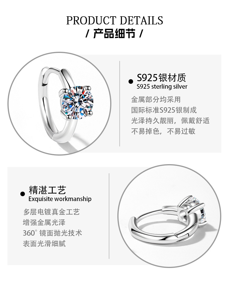 Серьги из стерлингового серебра s925 сережки из муассанита дикие высокие классические четыре когтя 50 баллов D цвет сережки из муассанита