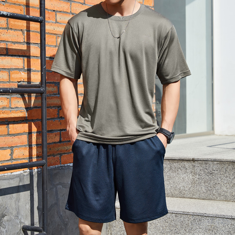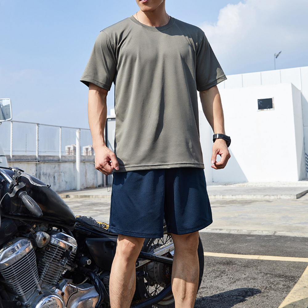 Летняя серая темно-зеленая морская синяя одежда для физического восстановления с короткими рукавами, мужская спортивная тренировочная одежда на открытом воздухе, быстросохнущая дышащая футболка с круглым вырезом