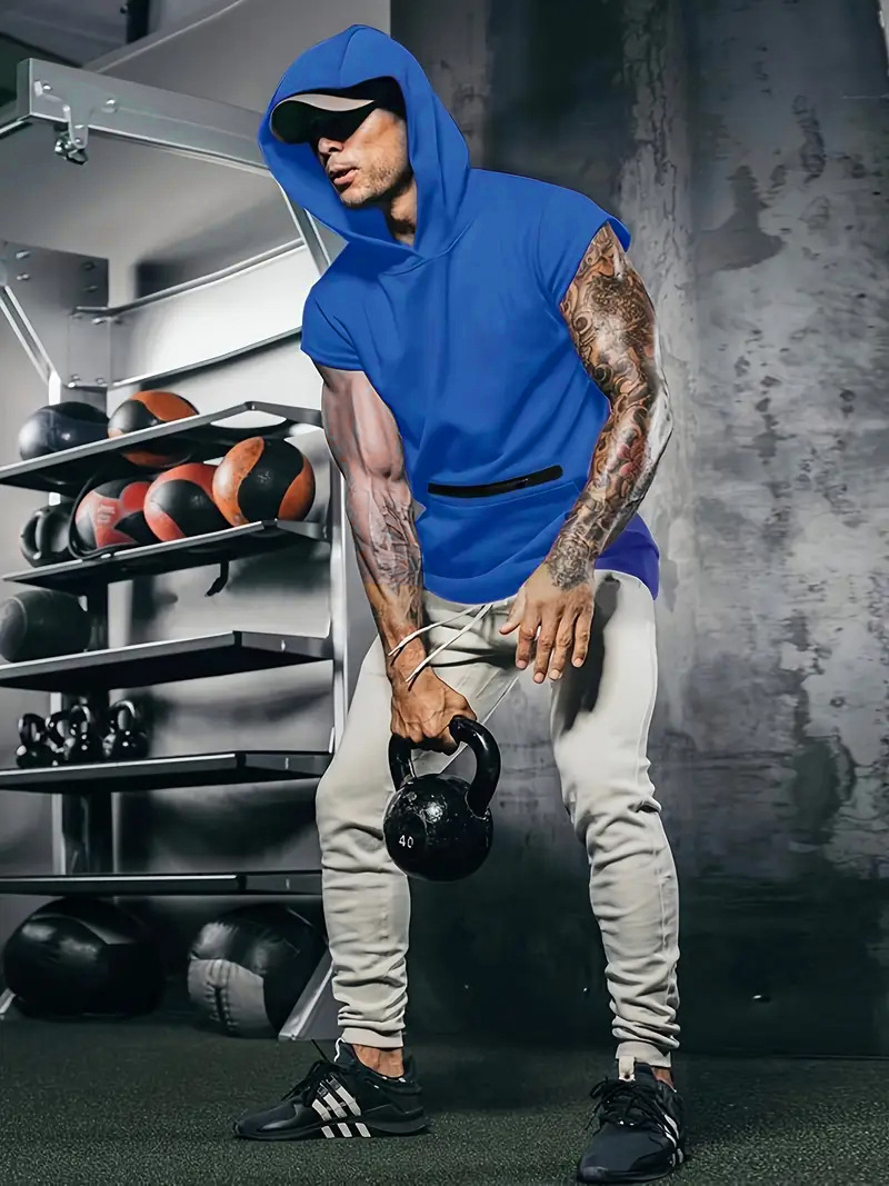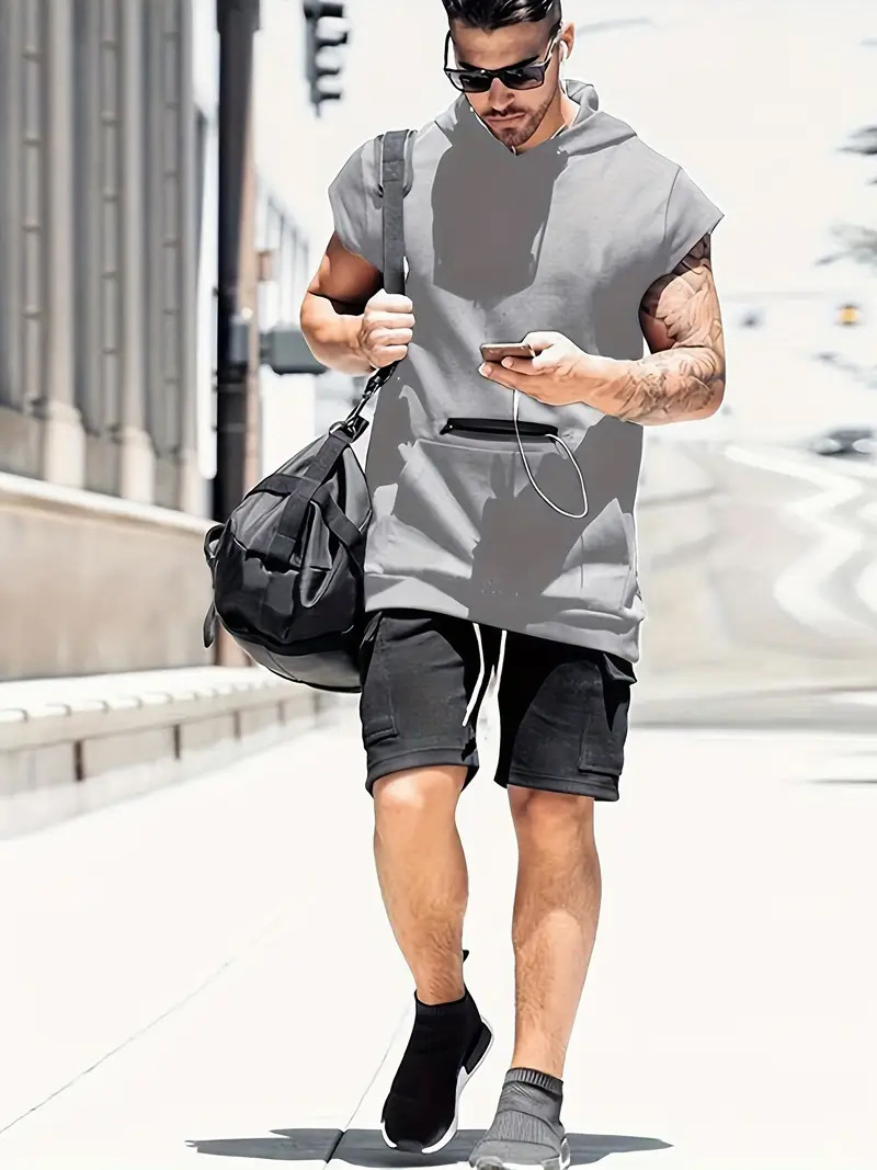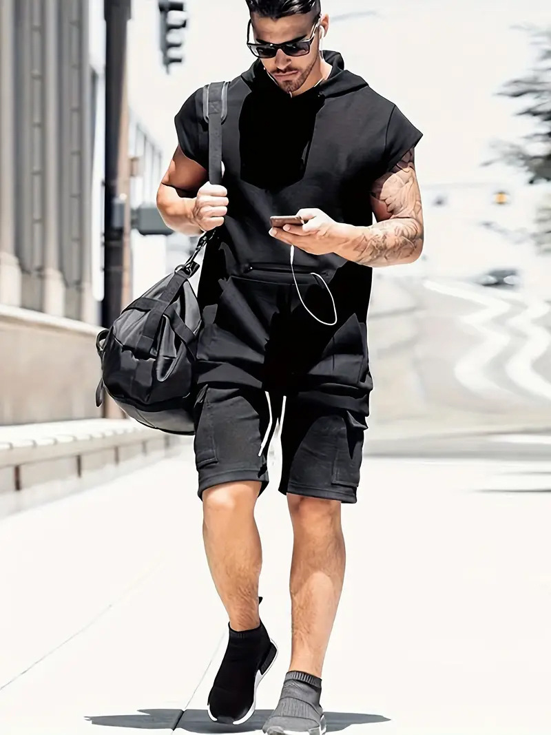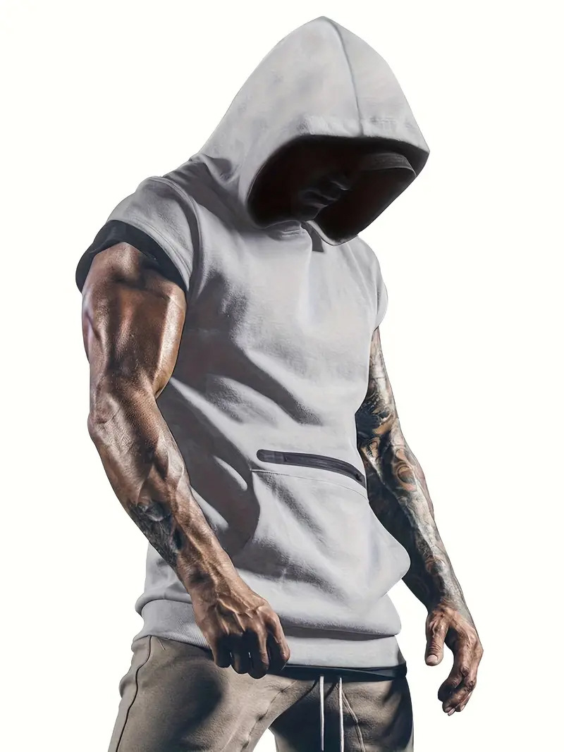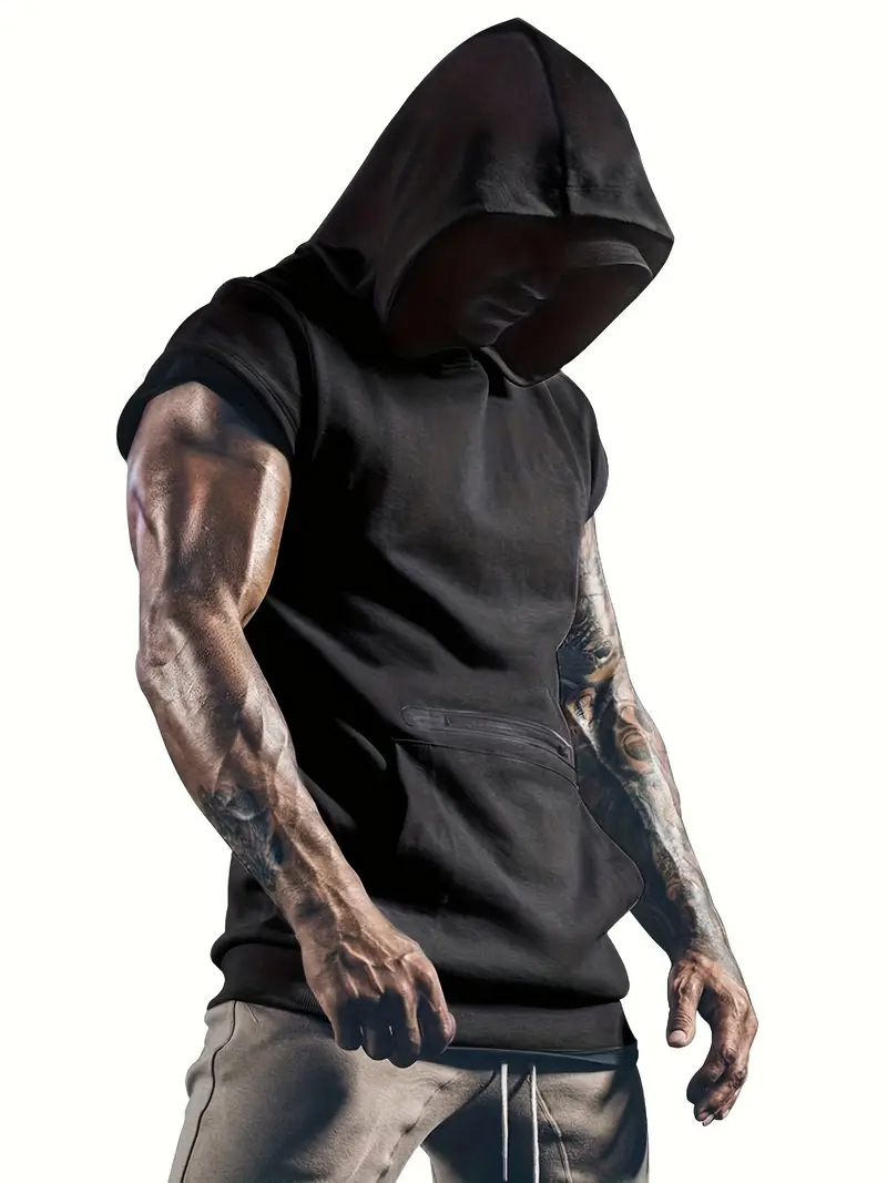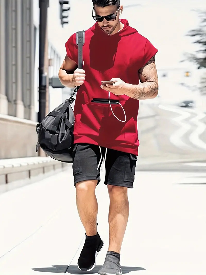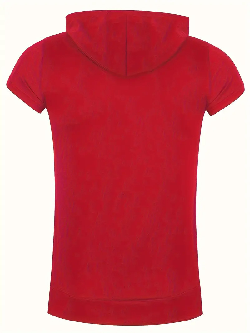 Новая летняя мужская однотонная повседневная мужская футболка с короткими рукавами и капюшоном, однотонная маленькая саржевая футболка на молнии