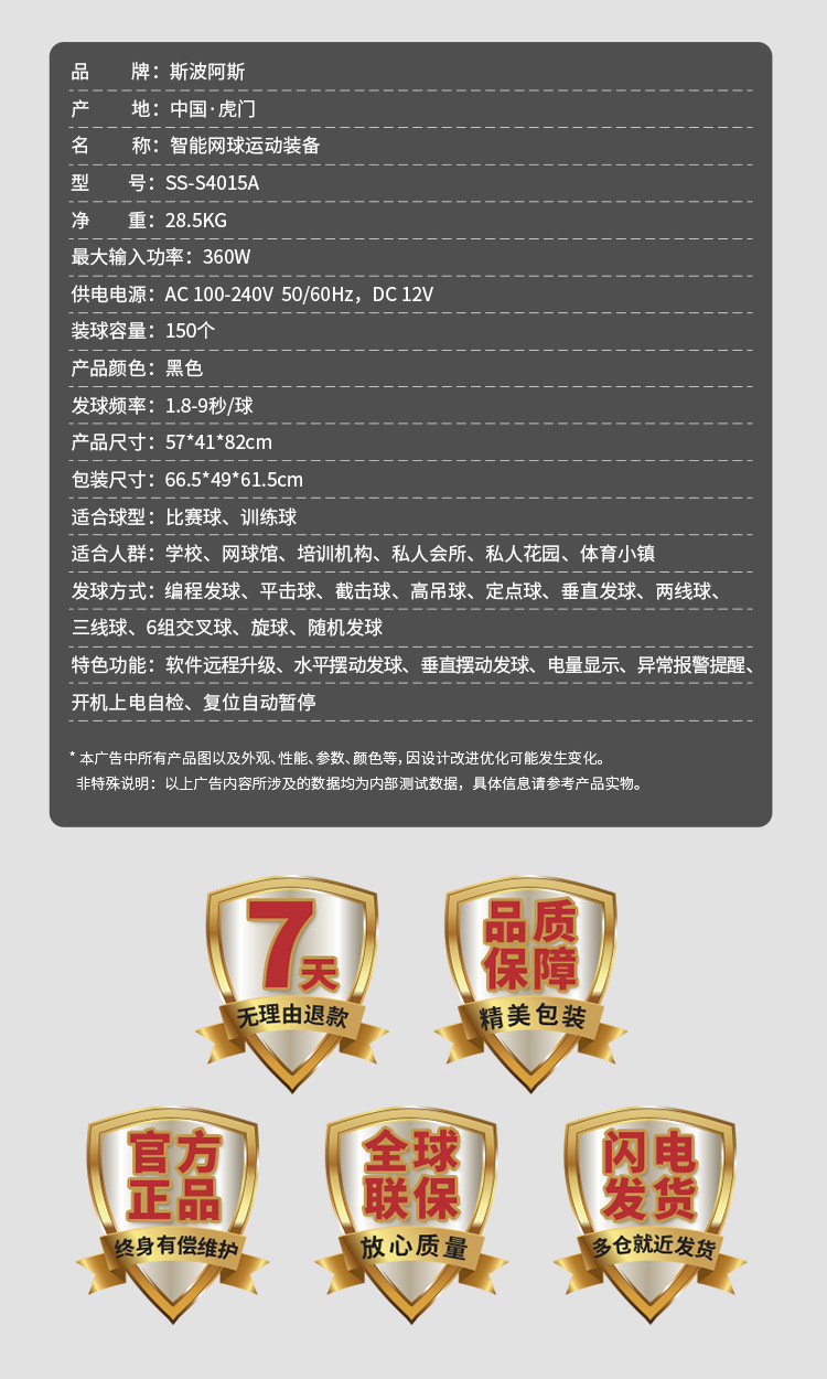 Spores S4015A Теннисная автоматическая машина для мячей Тренировочное оборудование Одиночная самораскрывающаяся машина.